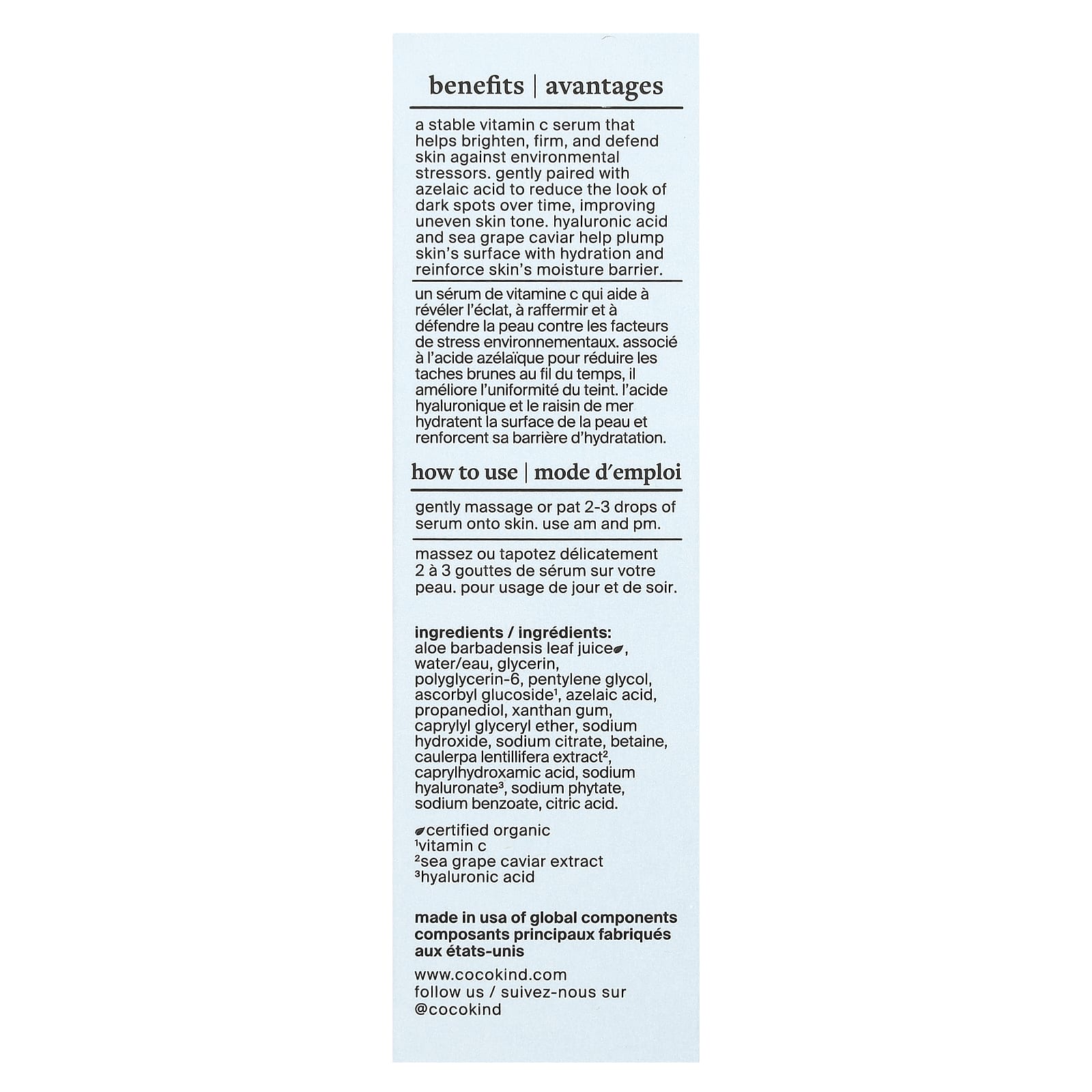 Сыворотка со стабильным витамином С, которая осветляет, укрепляет и защищает кожу от стрессовых факторов окружающей среды. мягко сочетается с азелаиновой кислотой, чтобы со временем уменьшить появление темных пятен и выровнять тон кожи. гиалуроновая кислота и икра морского винограда очищают поверхность кожи, увлажняют ее и укрепляют влагоудерживающий барьер.