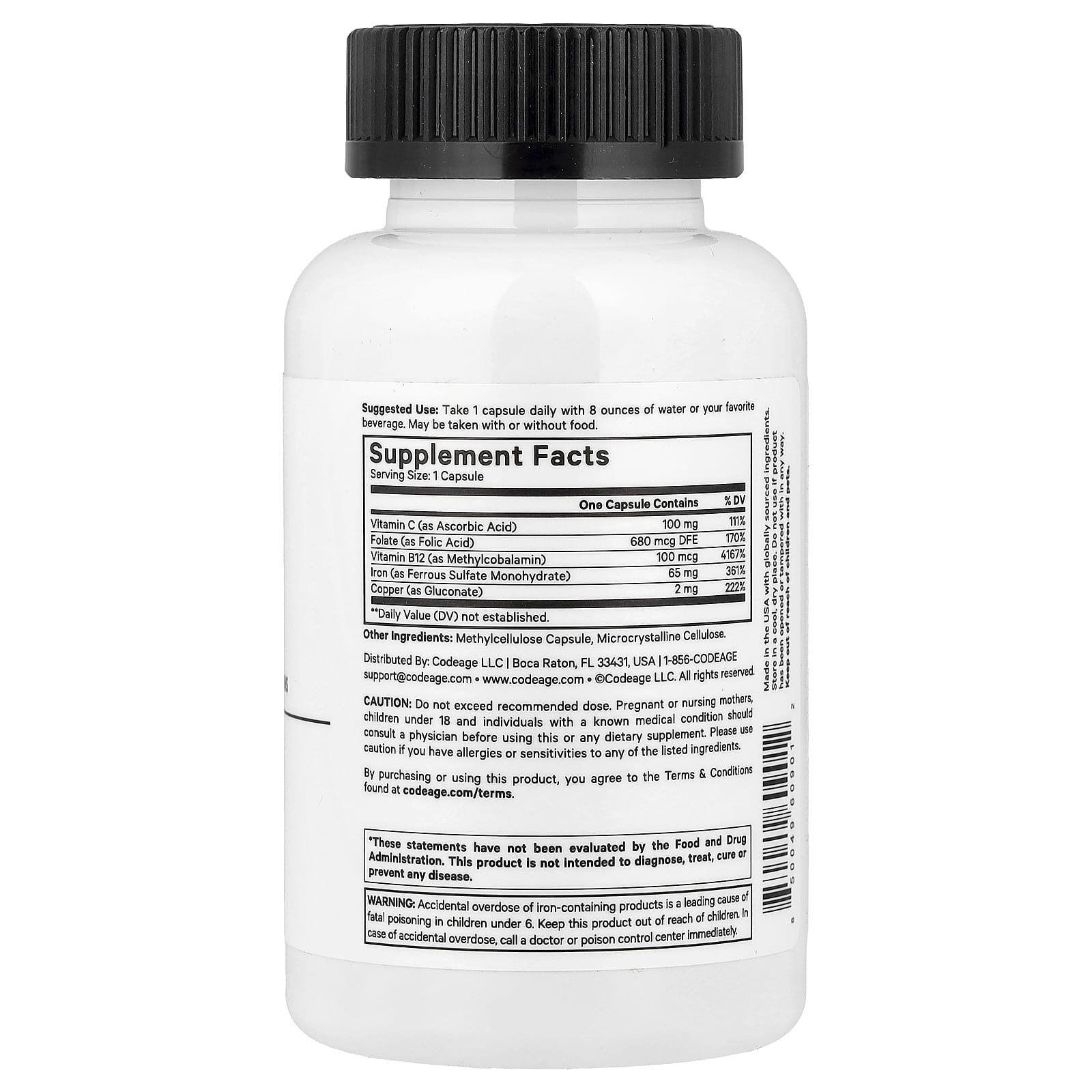 Эта добавка с железом дополнительно обогащена медью, фолатом (в виде фолиевой кислоты), витаминами C и витамином B12, которые дополняют эту ежедневную формулу.