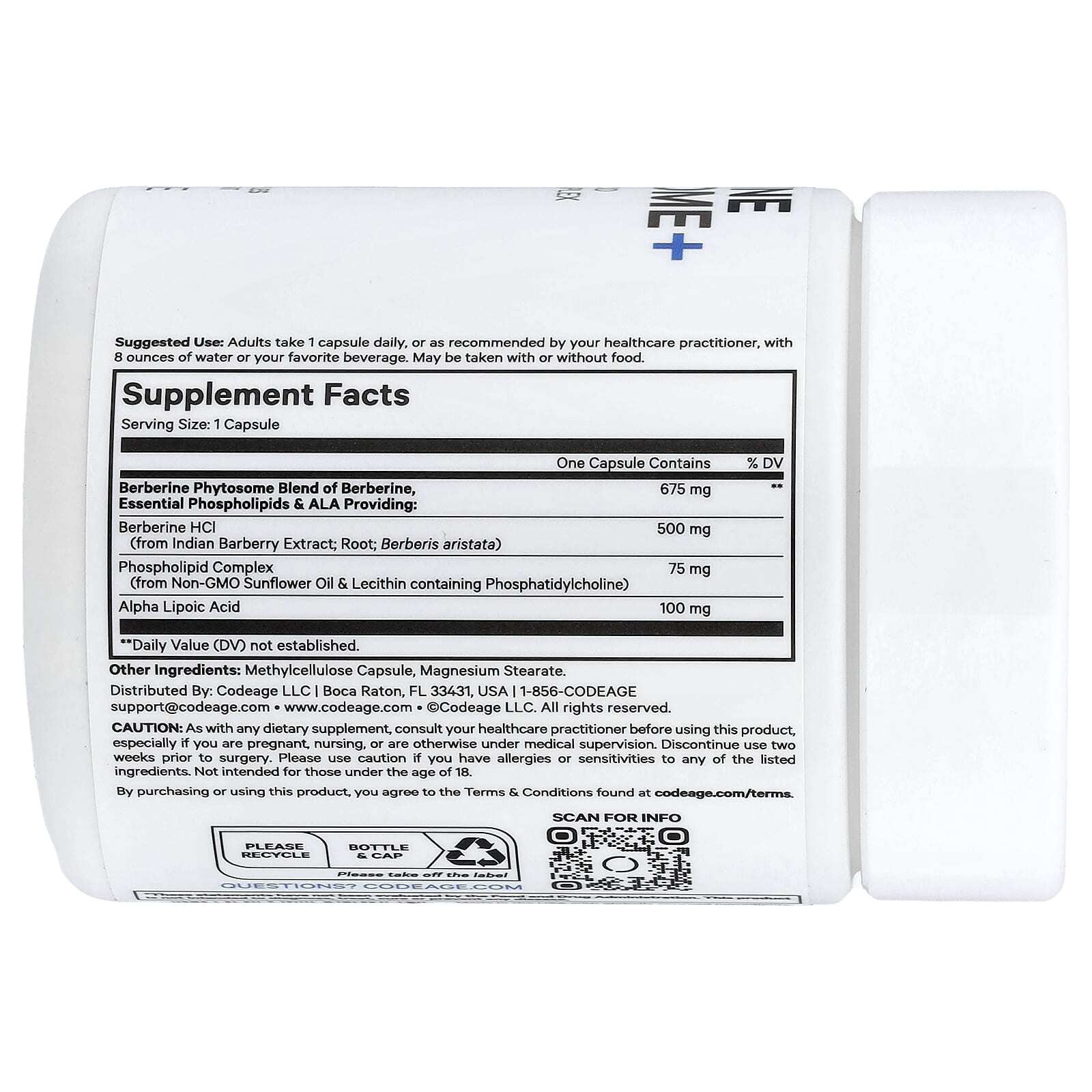 Добавка Codeage Berberine Phytosome + содержит высококачественную гидрохлорид берберина, полученную из экстракта индийского барбариса и альфа-липоевой кислоты. Эта добавка с берберином также содержит комплекс фосфолипидов, способствующих усвоению.