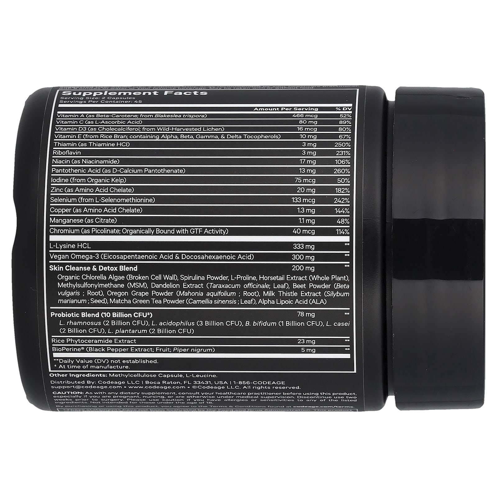 - Добавка с витаминами для лица Codeage также содержит фитокерамиды, марганец, хром, МСМ, порошок из листьев зеленого чая матча и экстракт семян расторопши.