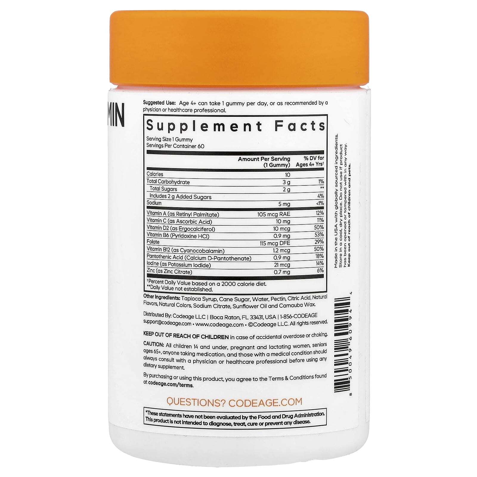 Жевательные мультивитамины для детей CodeAge Kids содержат комплексную смесь незаменимых витаминов и минералов, в том числе витамины A, C, D2, B6, B12, цинк, йод, фолат и пантотеновую кислоту. Эта формула разработана для удовлетворения потребностей детей в возрасте от 4 лет в питании.