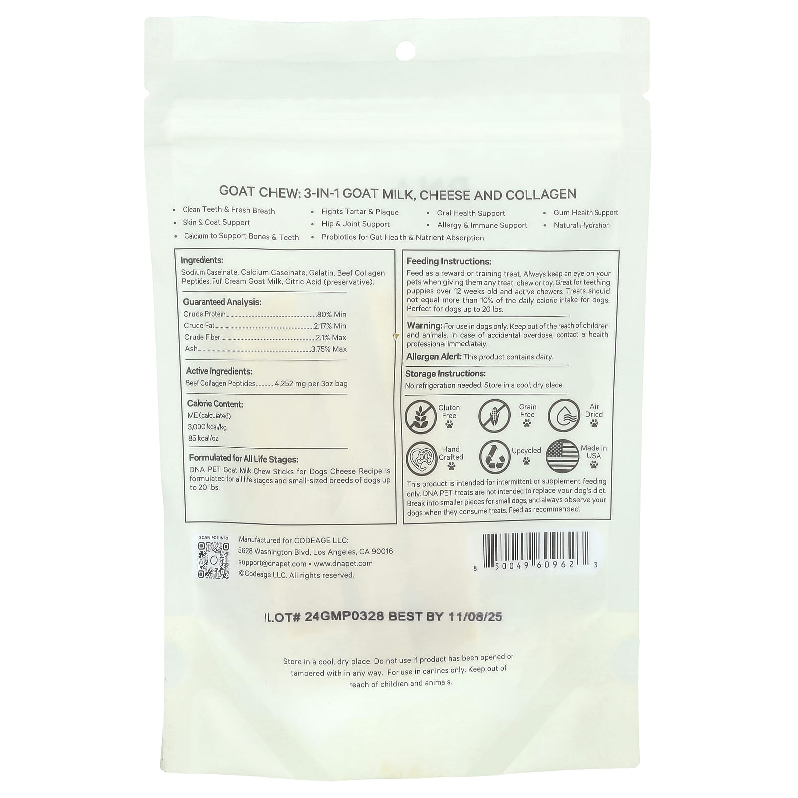 Рецепт жевательных палочек из козьего молока для собак от DNA PET разработан для собак всех возрастов и небольших пород весом до 20 фунтов.