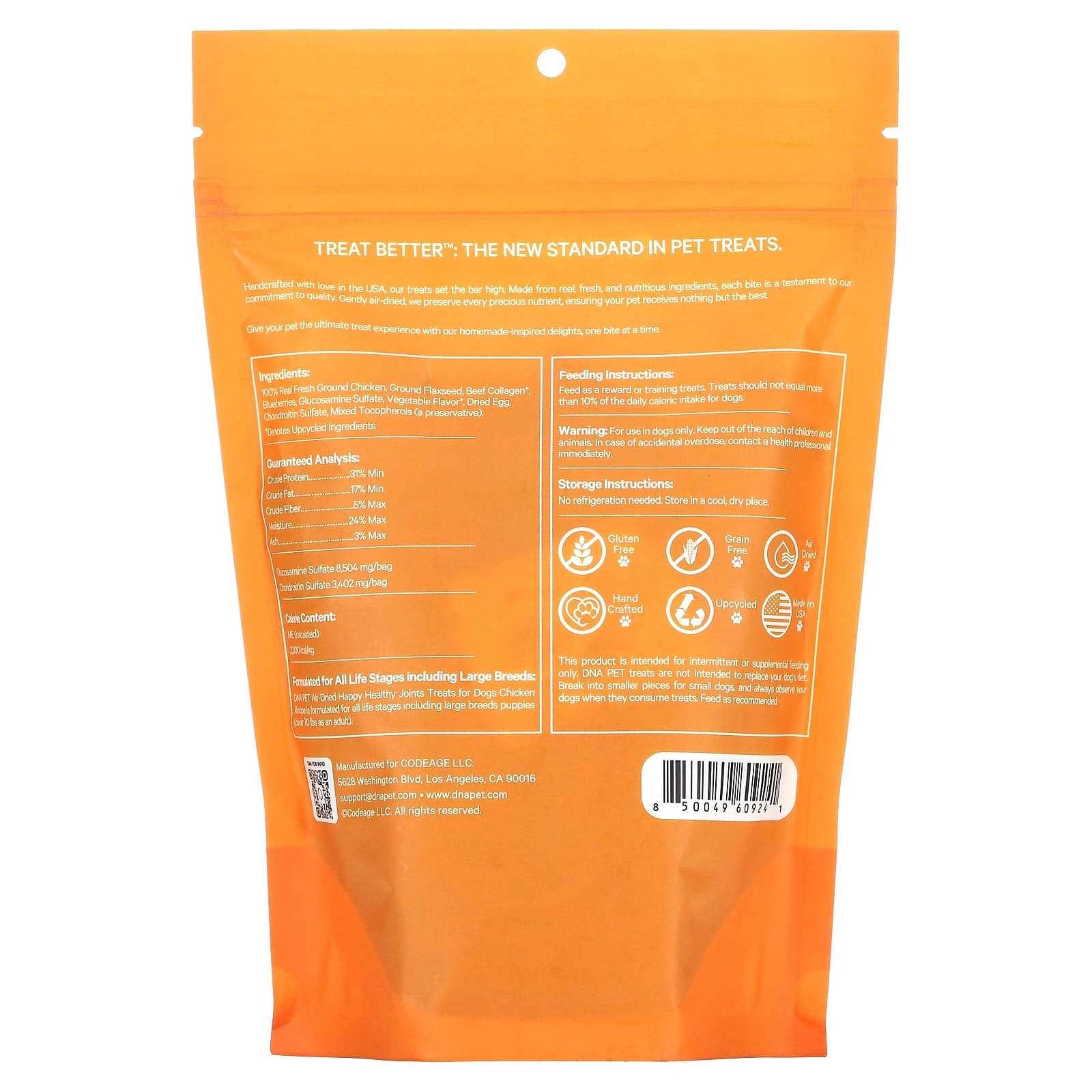 Разработано для всех этапов жизни, в том числе для крупных пород: Высушенное на воздухе лакомство для здоровья суставов Happy Healthy Joints с курицей ДНКPET разработано для всех этапов жизни, включая щенков крупных пород (более 34 кг (70 фунтов) во взрослом виде).