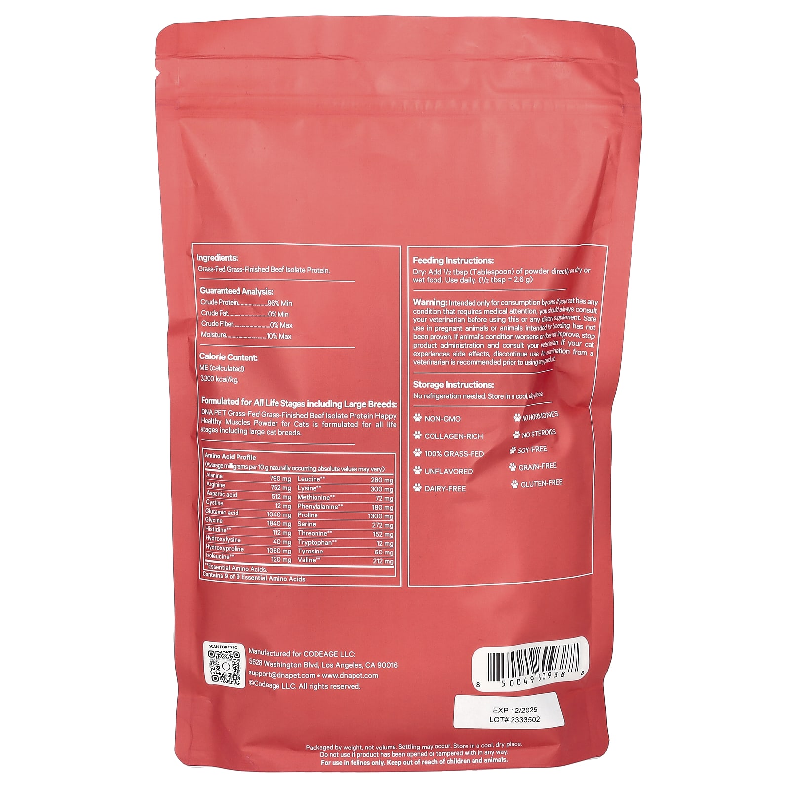 Порошок для изолята говядины от коров травяного откорма с ДНК, полученный от животных травяного откорма, Порошок для кошек Happy Healthy Muscles разработан для всех этапов жизни, в том числе и кошек крупных пород.