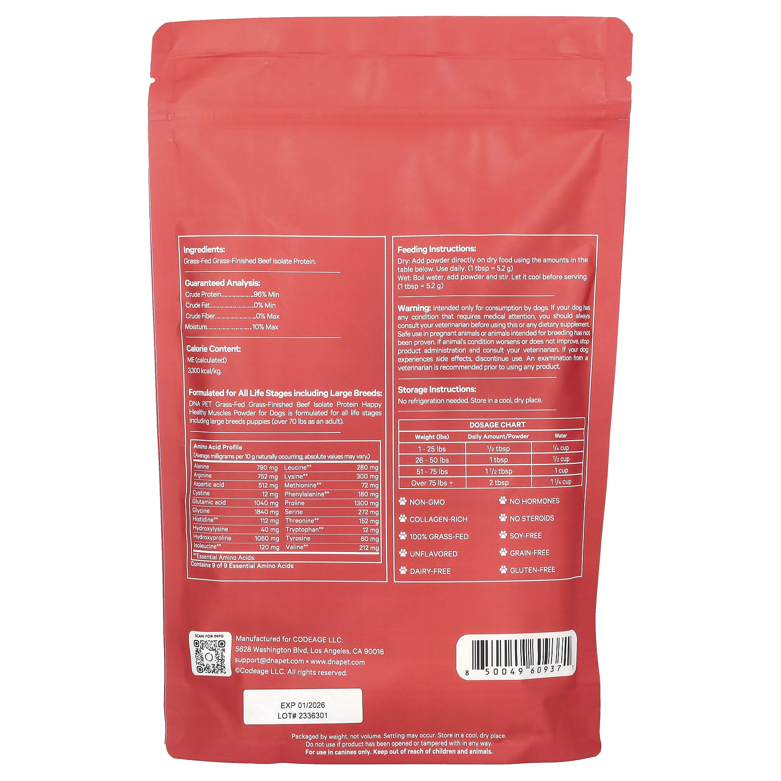 Порошок для протеина изолята говядины от коров травяного откорма с ДНК ПЭТ травяного откорма для здоровья собак Happy Healthy Muscles разработан для всех возрастов, включая щенков крупных пород (более 34 кг (70 фунтов) во взрослом виде).