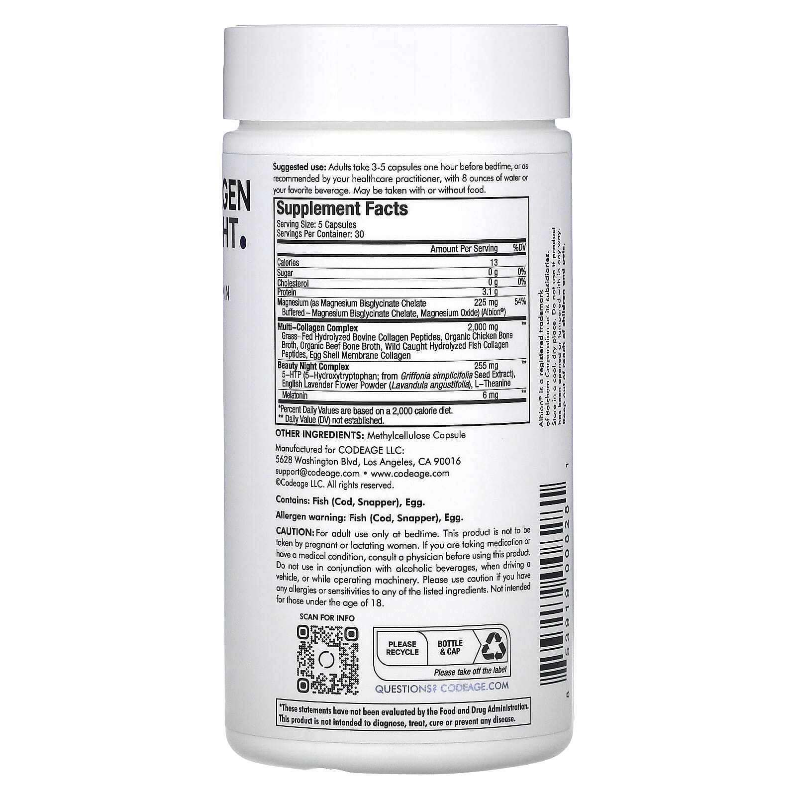 Попробуйте CodeAge Multi Collagen Beauty Night, усовершенствованную универсальную коллагеновую добавку, которая содержит 5 типов коллагена, мелатонин, глицинат магния, 5-HTP, L-теанин и лаванду, которые способствуют расслаблению и омоложению.
