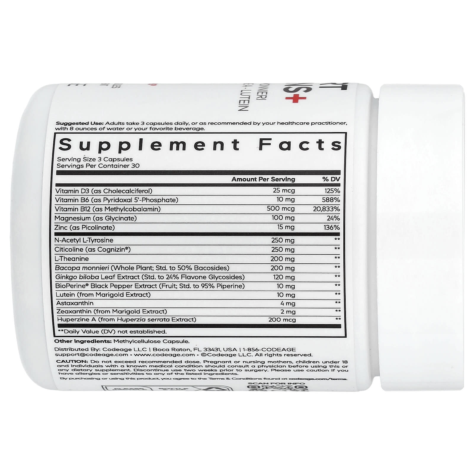 Добавка CodeAge E-Sport Vitamins+ содержит смесь цитиколина (Cognizin®), бакопы Монье, астаксантина и L-теанина премиального качества. Cognizin® — это запатентованная форма цитиколина, разработанная для поддержки когнитивных функций и концентрации внимания.