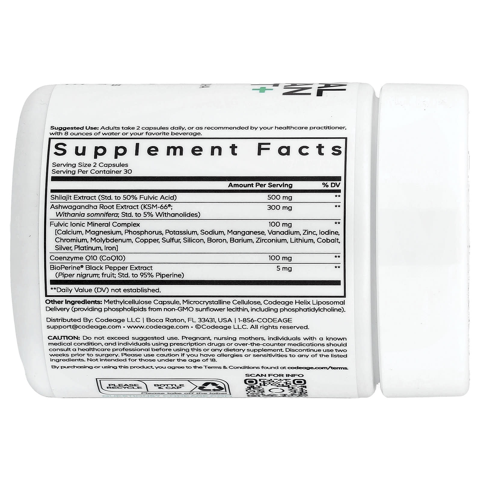 Липосомальное мумие гималайское + CodeAge содержит экстракт гималайского мумие с липосомальной системой доставки, соответствующей вашему запросу «липосомальное гималайское мумие». Эта формула также включает ашваганду KSM-66®, коэнзим Q10, BioPerine® и фульво-ионный минеральный комплекс, содержащий более 20 микроэлементов.