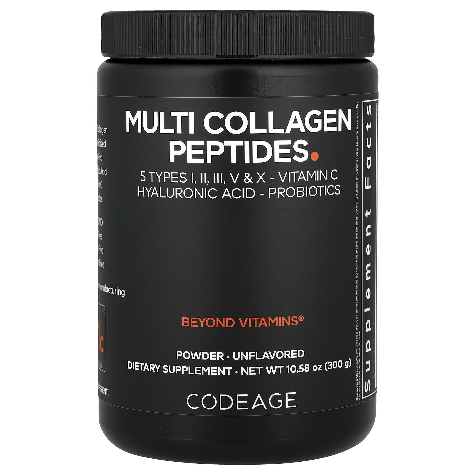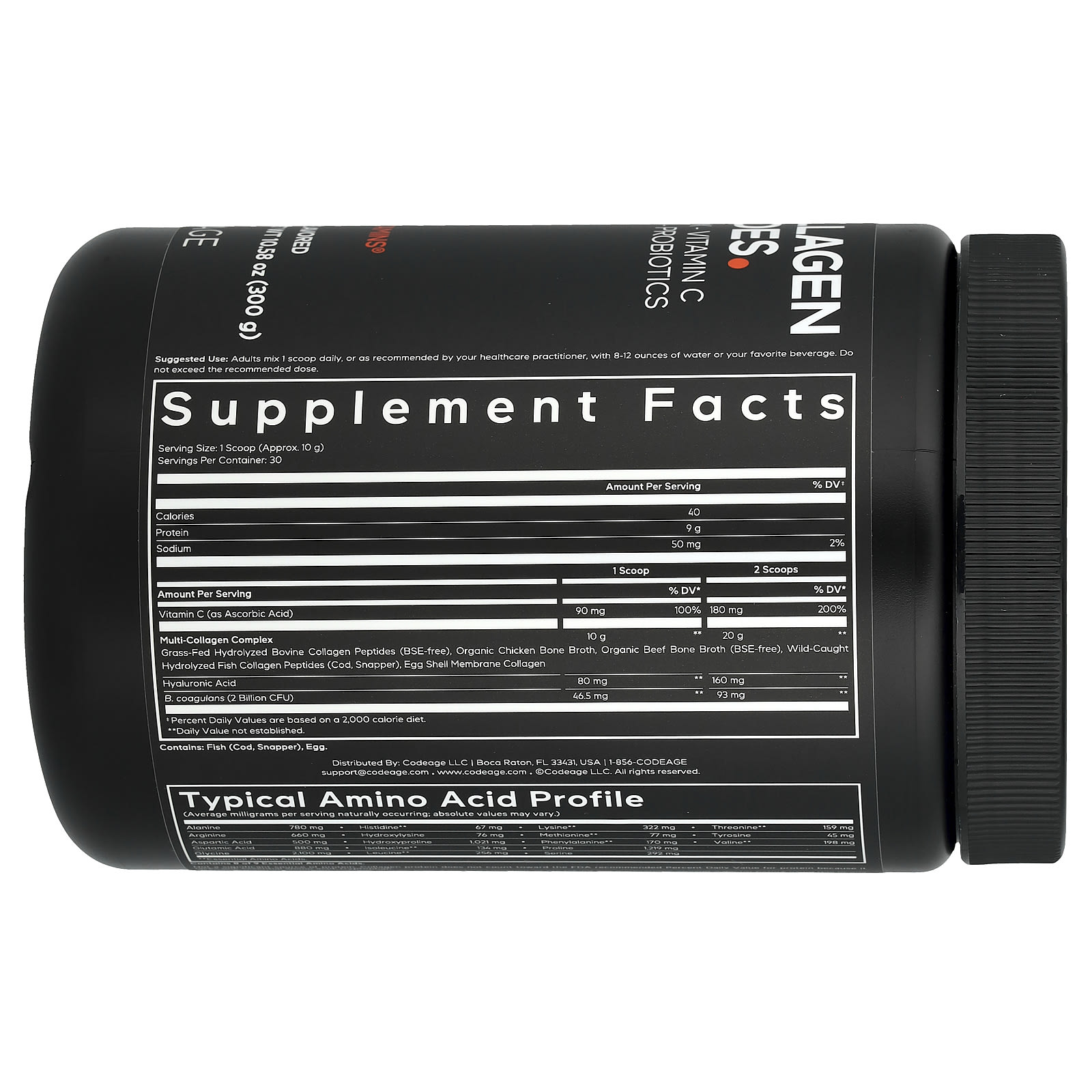 Пептиды мультиколлагена с пробиотиками от Codeage — это усовершенствованная добавка с несколькими видами коллагена в форме порошка, содержащая 5 типов коллагена из 5 различных пищевых источников, а также витамин C, пробиотики и гиалуроновую кислоту.