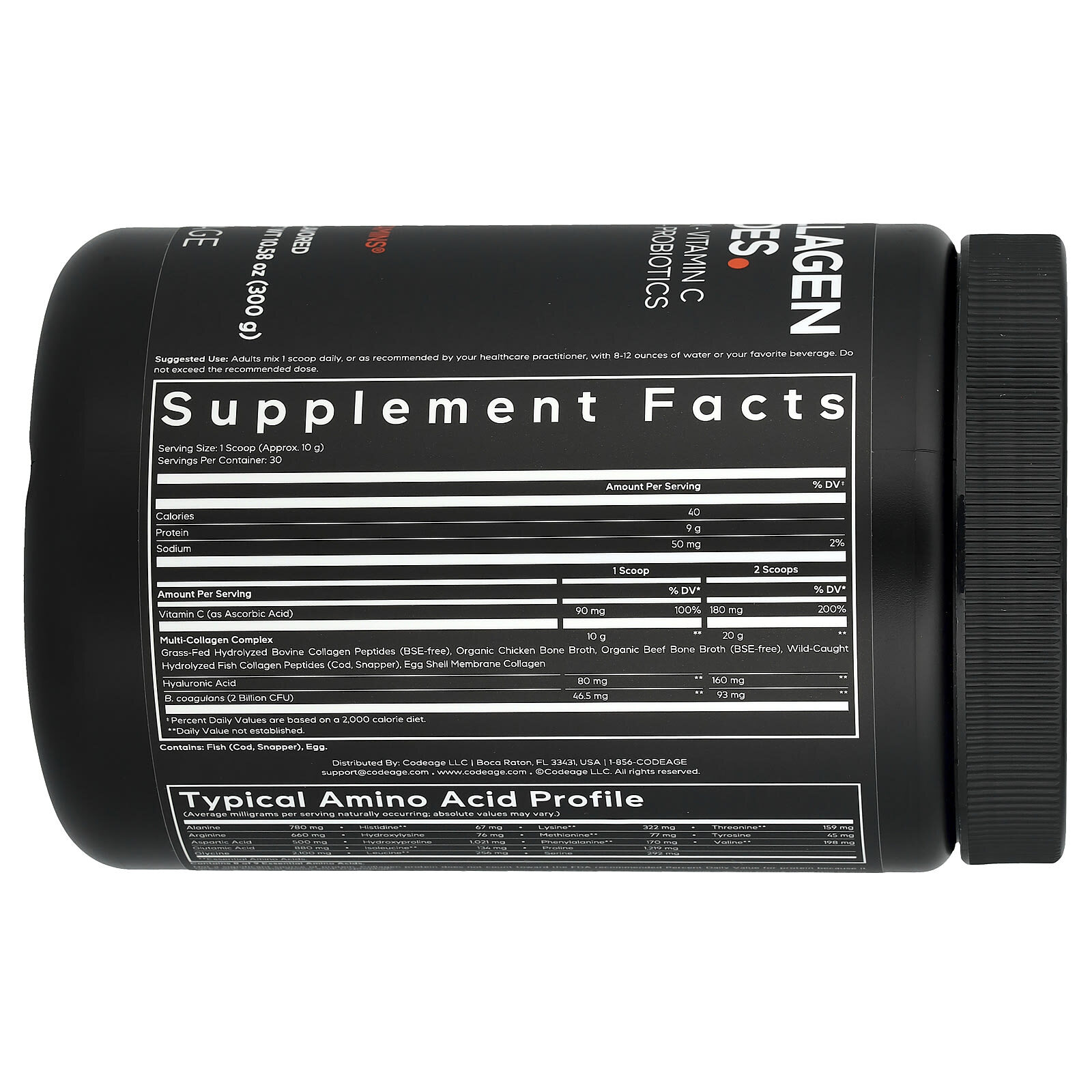 - Пептиды мультиколлагена с пробиотиками в форме порошка от Codeage сочетают в себе 5 типов коллагена (I, II, III, V и X) из гидролизованного бычьего коллагена, органических куриных и говяжьих костных бульонов, гидролизованного рыбьего коллагена и коллагена из мембраны яичной скорлупы.