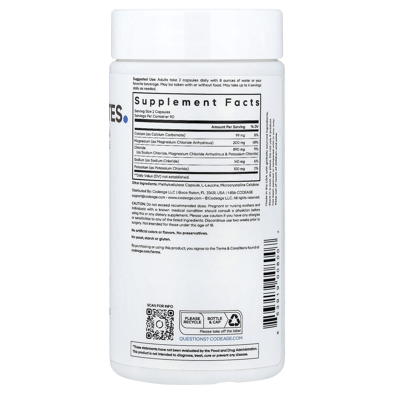 Добавка с кетоэлектролитами от Codeage содержит сбалансированную смесь основных минералов, включая натрий, калий, магний и кальций, без углеводов и калорий в составе.