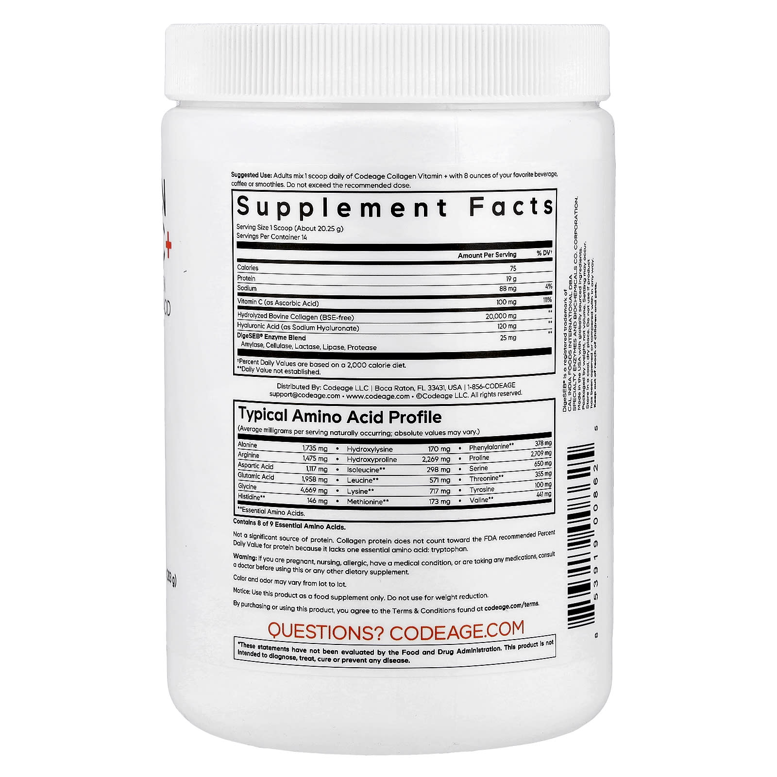 Улучшите свой режим приема коллагена с помощью порошковой добавки Codeage Collagen с витамином C +, содержащей 20 г коллагена травяного откорма на порцию, в сочетании с витамином C, гиалуроновой кислотой, 18 аминокислотами и пищеварительными ферментами для полноценной коллагеновой добавки.