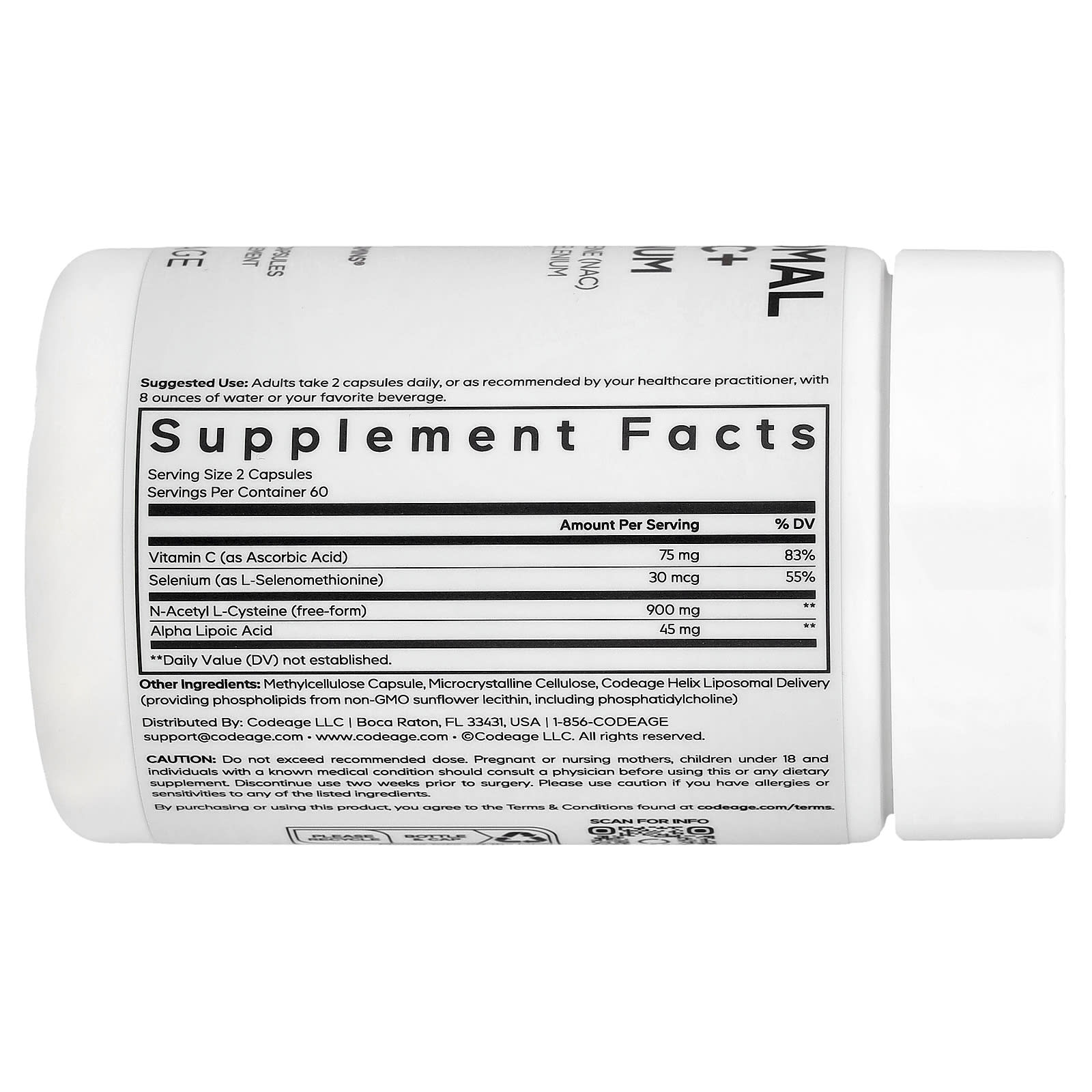 Эта добавка в капсулах NAC содержит липосомальную доставку фосфолипидного комплекса Codeage Helix с использованием подсолнечного масла без ГМО для дополнительной чистоты.