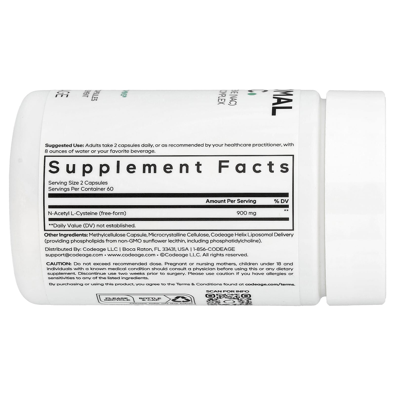 Липосомальный NAC CodeAge содержит 900 мг N-ацетил L-цистеина в свободной форме, обеспечивая высококачественный состав ингредиентов.