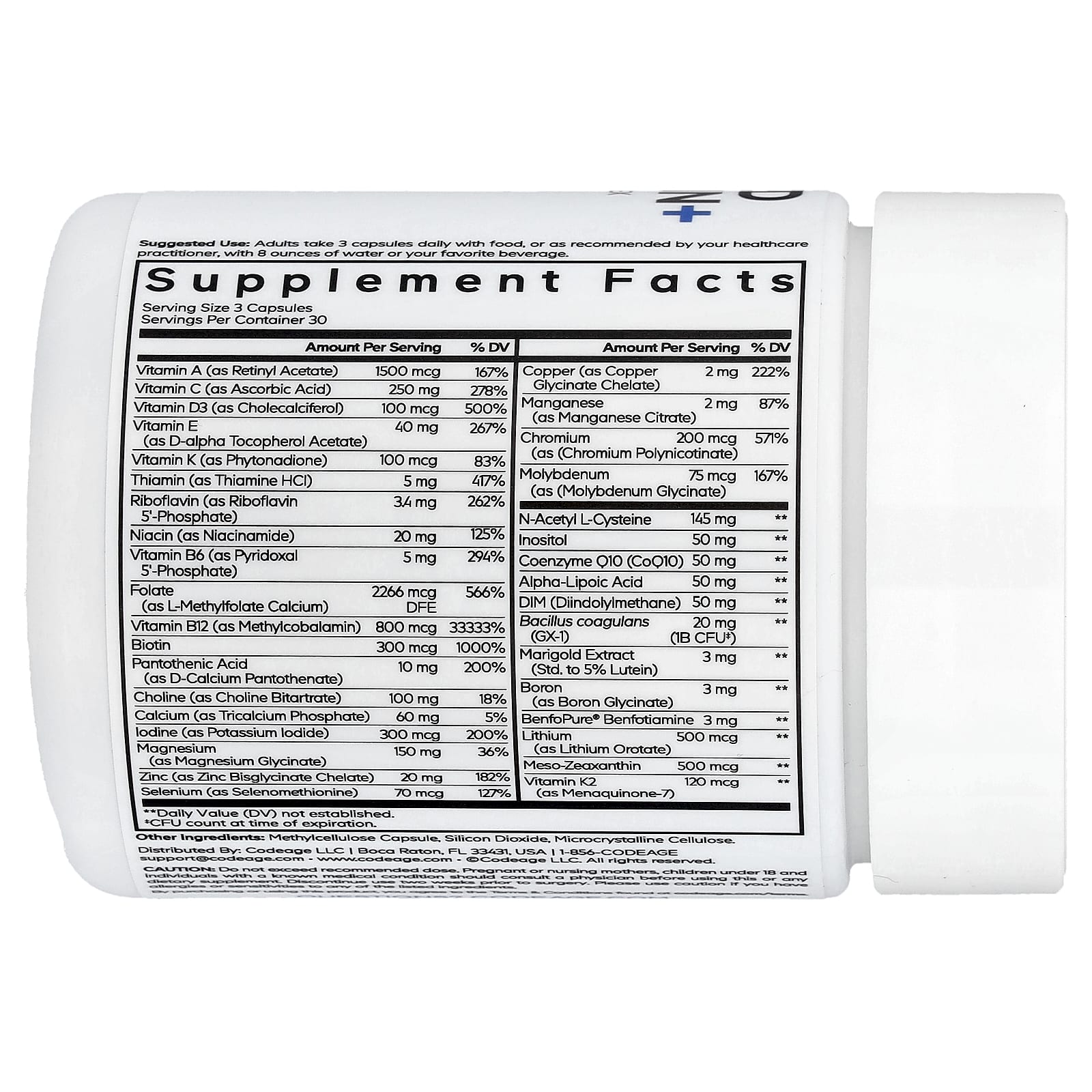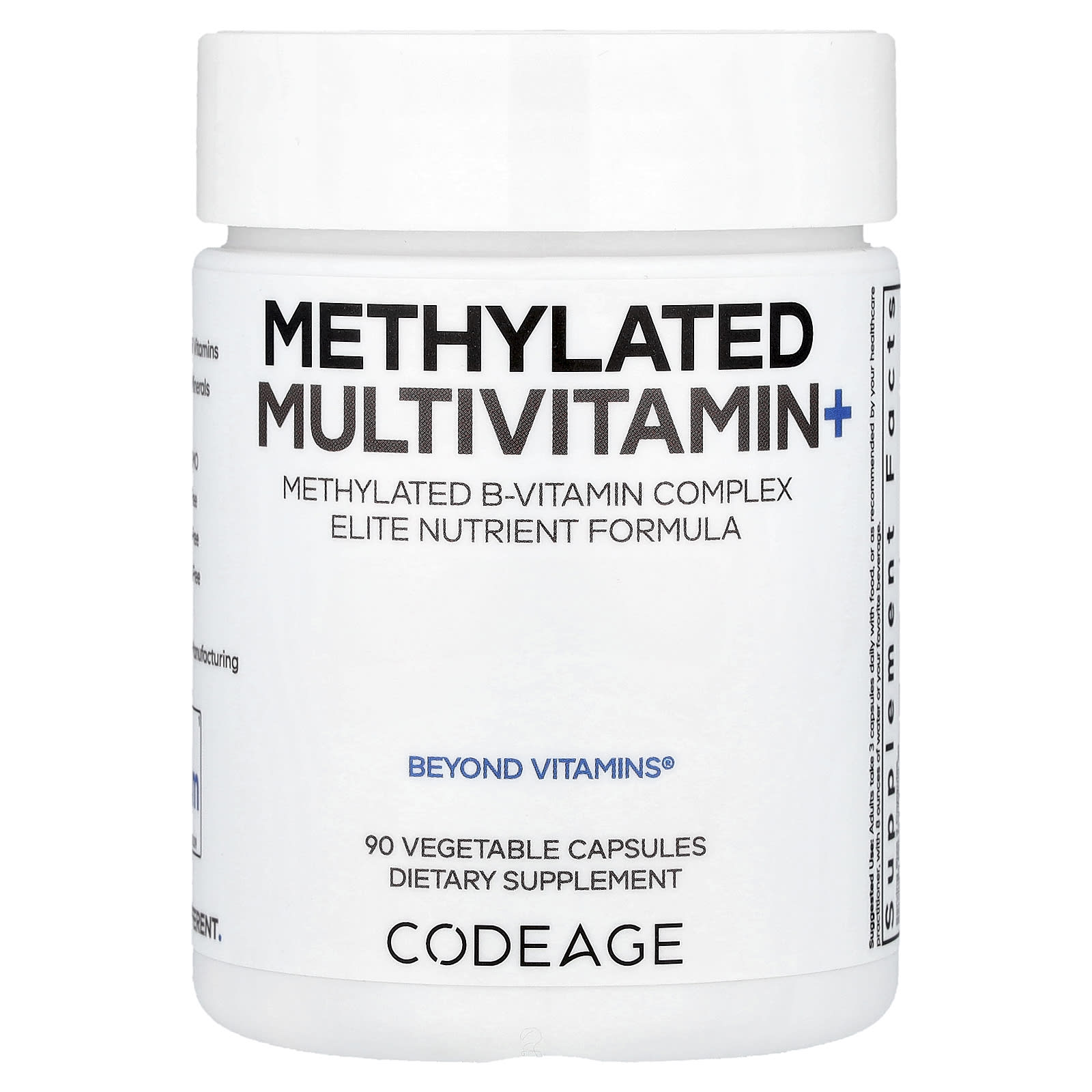 Codeage Methylated Multivitamin + - это ультрасовременная мультивитаминная добавка. Он предлагает полный спектр витаминов (A, C, D3, E, K, B-комплекс), включая метилированные формы, такие как L-метилфолат и метилкобаламин, ключевые минералы (магний, кальций, цинк, селен), антиоксиданты (CoQ10, альфа -Липоевая кислота (DIM), пробиотики и более сложные ингредиенты.