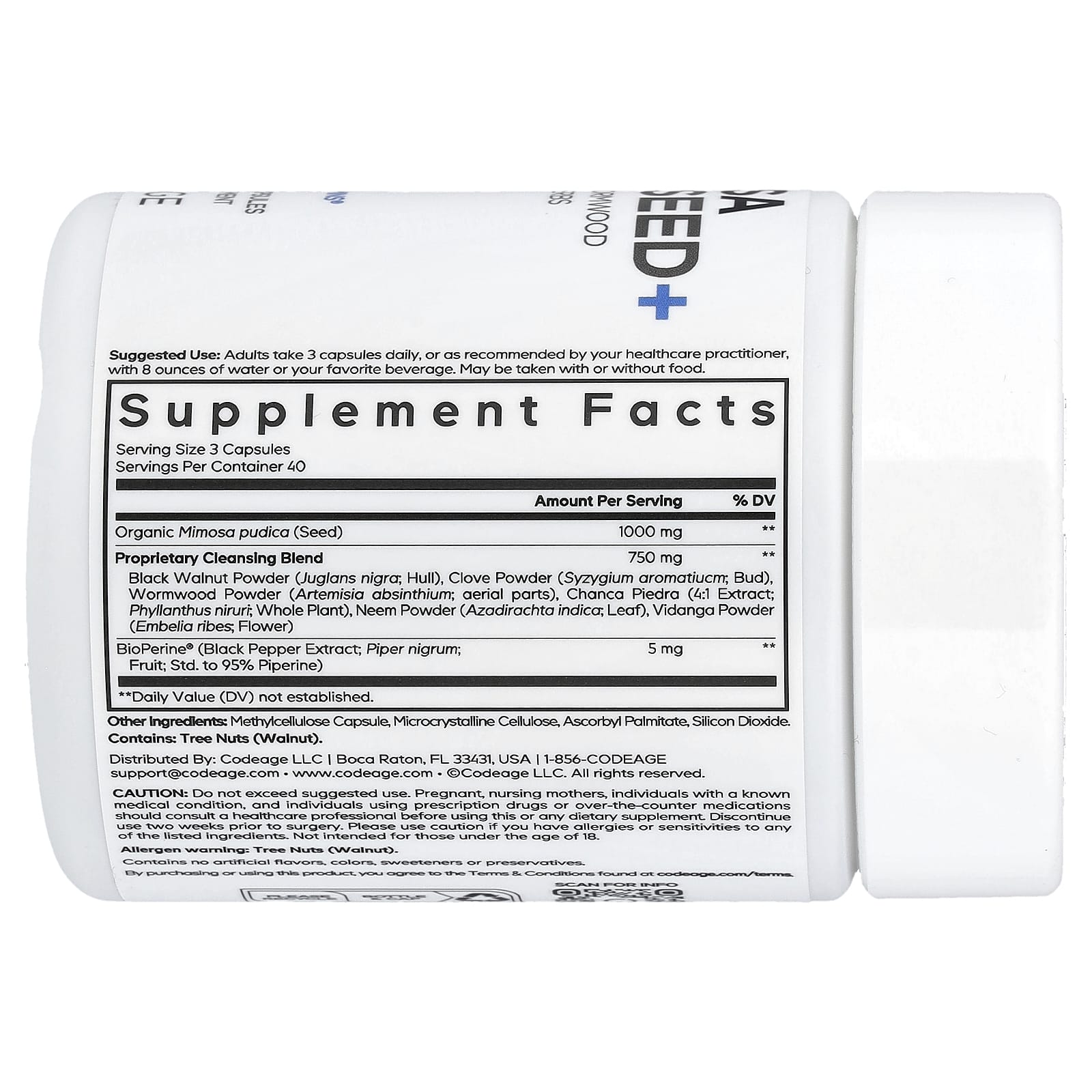 Добавка с мимозой стыдливой от Codeage содержит 1000 мг органических семян Mimosa pudica, обогащенных черным перцем BioPerine® для улучшенного усвоения. В состав также входят черный орех, полынь горькая, гвоздика, филлантус, ним и виданга.