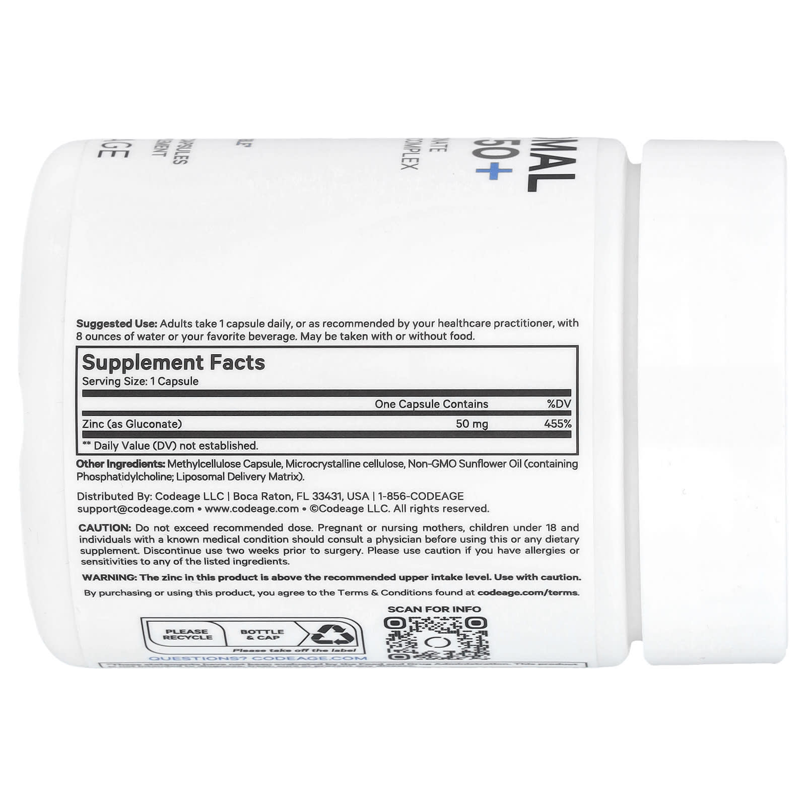 Оцените преимущества липосомального цинка 50+ от Codeage, содержащего 50 мг биодоступного глюконата цинка. Этот важный минерал участвует в нескольких биологических функциях.