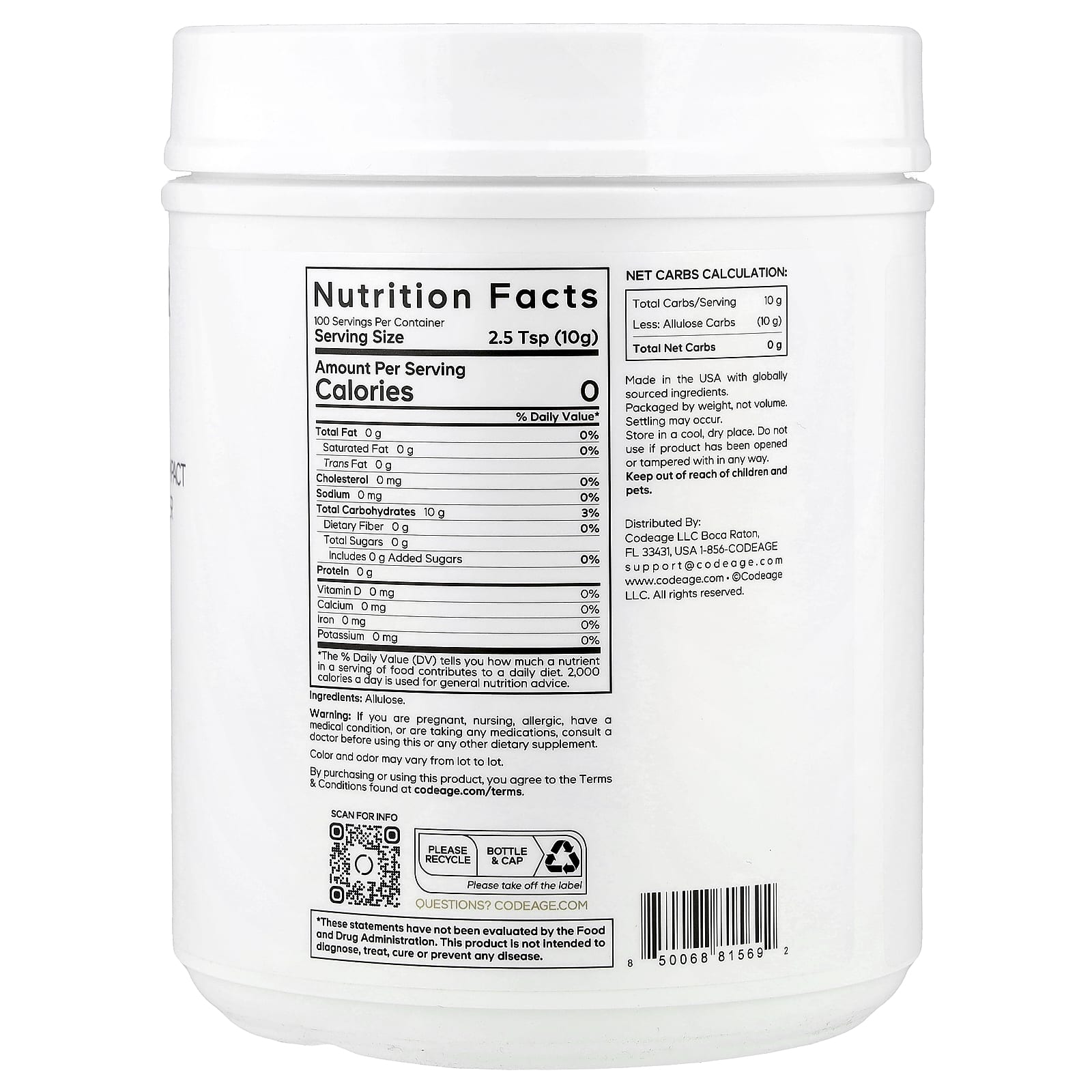 | Всего чистых углеводов | 0 г |