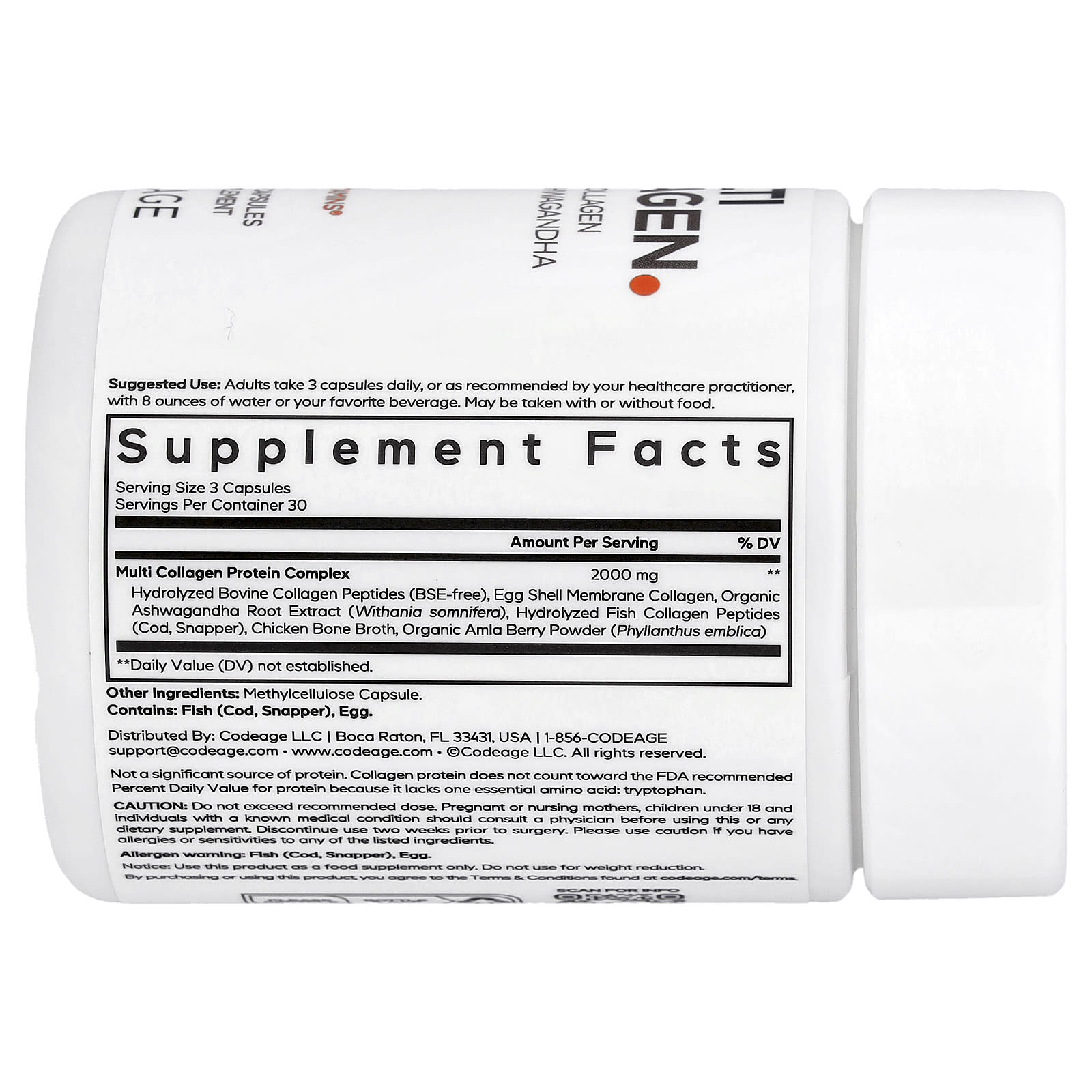 Мультиколлаген в капсулах Codeage содержит смесь 5 типов коллагена (I, II, III, V и X) и 18 аминокислот.
