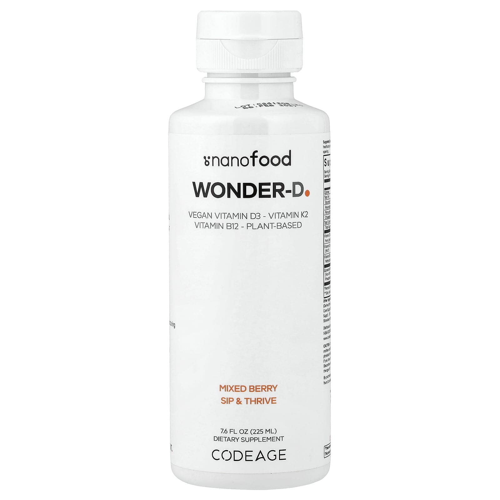 Codeage Nanofood Wonder-D - это новаторская жидкая добавка 3 в 1, разработанная экспертами с витаминами растительного происхождения. Она уникально сочетает в себе веганский витамин D3 из экстракта лишайника, витамин K2 в виде менахинона-7 (MK-7) и витамин B12 в виде метилкобаламина.