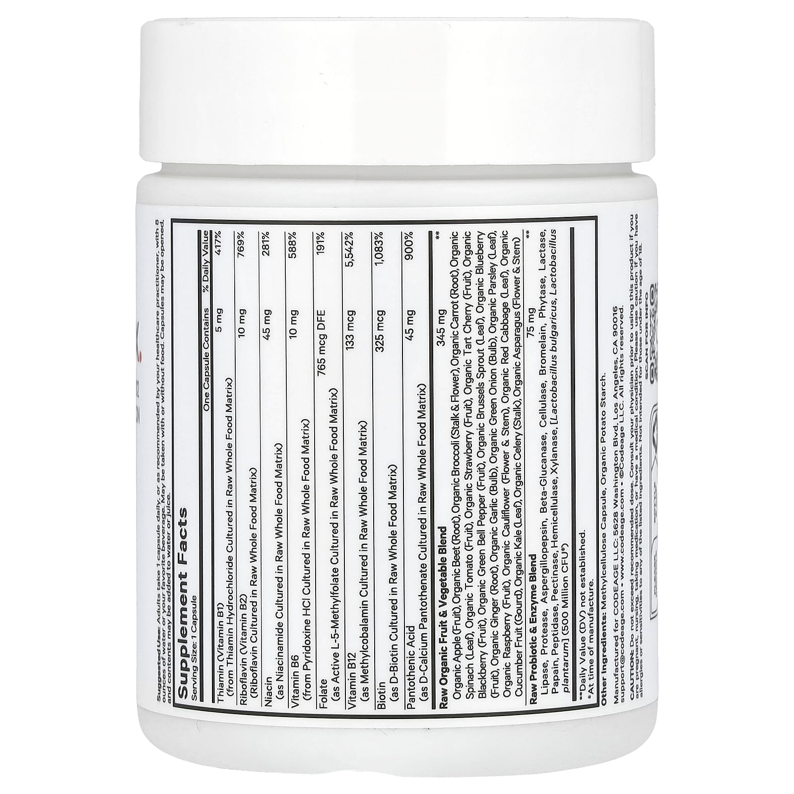 Комплекс сырых витаминов группы B Codeage - это комплексная смесь из 8 незаменимых витаминов группы B, включая тиамин, рибофлавин, ниацин, витамин B6, фолат, витамин B12, биотин и пантотеновую кислоту. абсорбция.