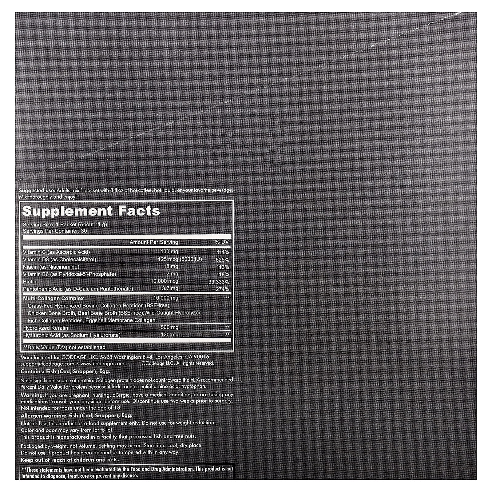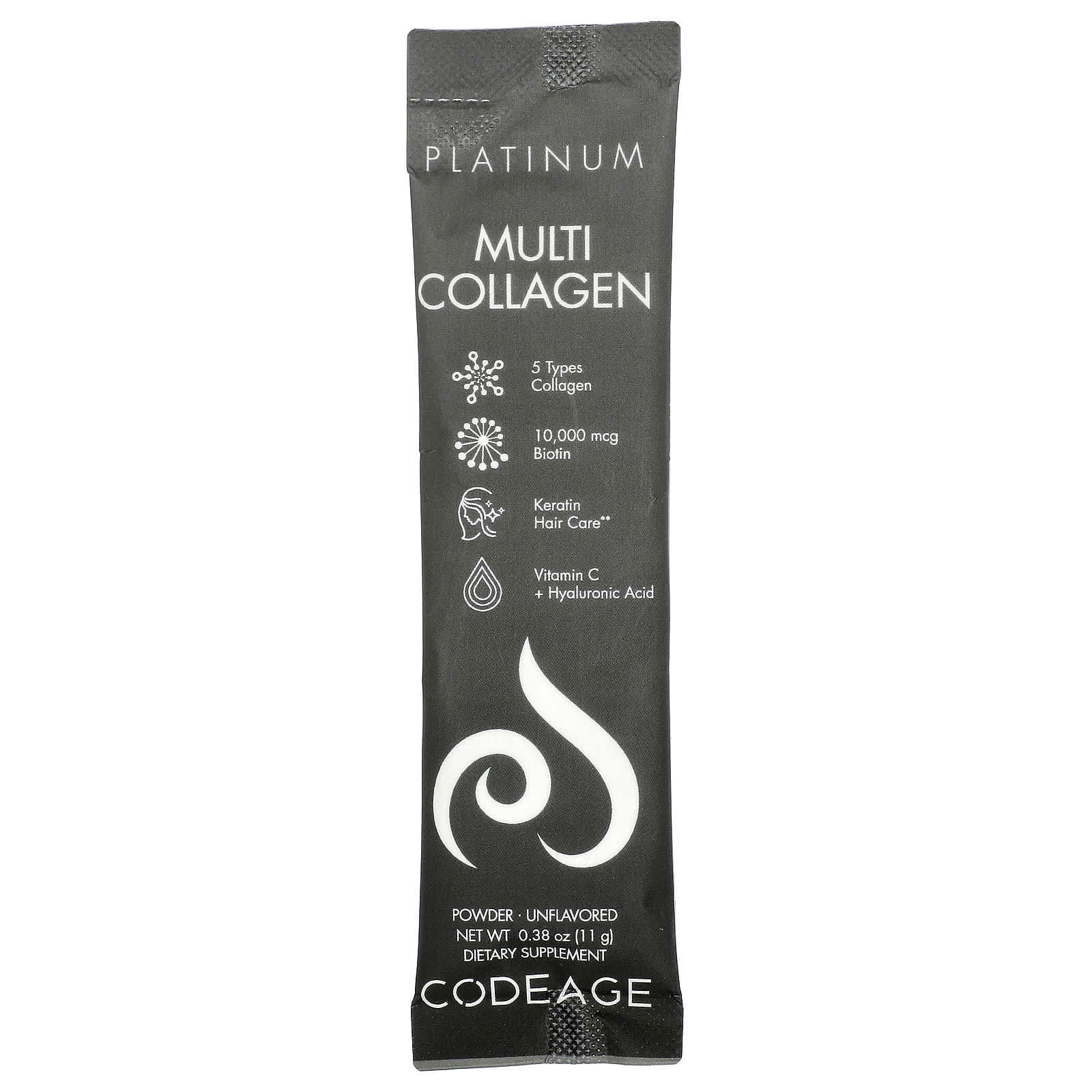 Мультиколлагеновые стики Platinum от Codeage - это средство в форме порошка премиального качества, которое доступно в удобных стиках и содержит 5 типов пептидов коллагена, 18 аминокислот, биотин, кератин и незаменимые витамины B6, C и D3, а также гиалуроновую и пантотеновую кислоты. Каждая упаковка содержит 30 стиков, предлагая комплексное решение "все в одном".