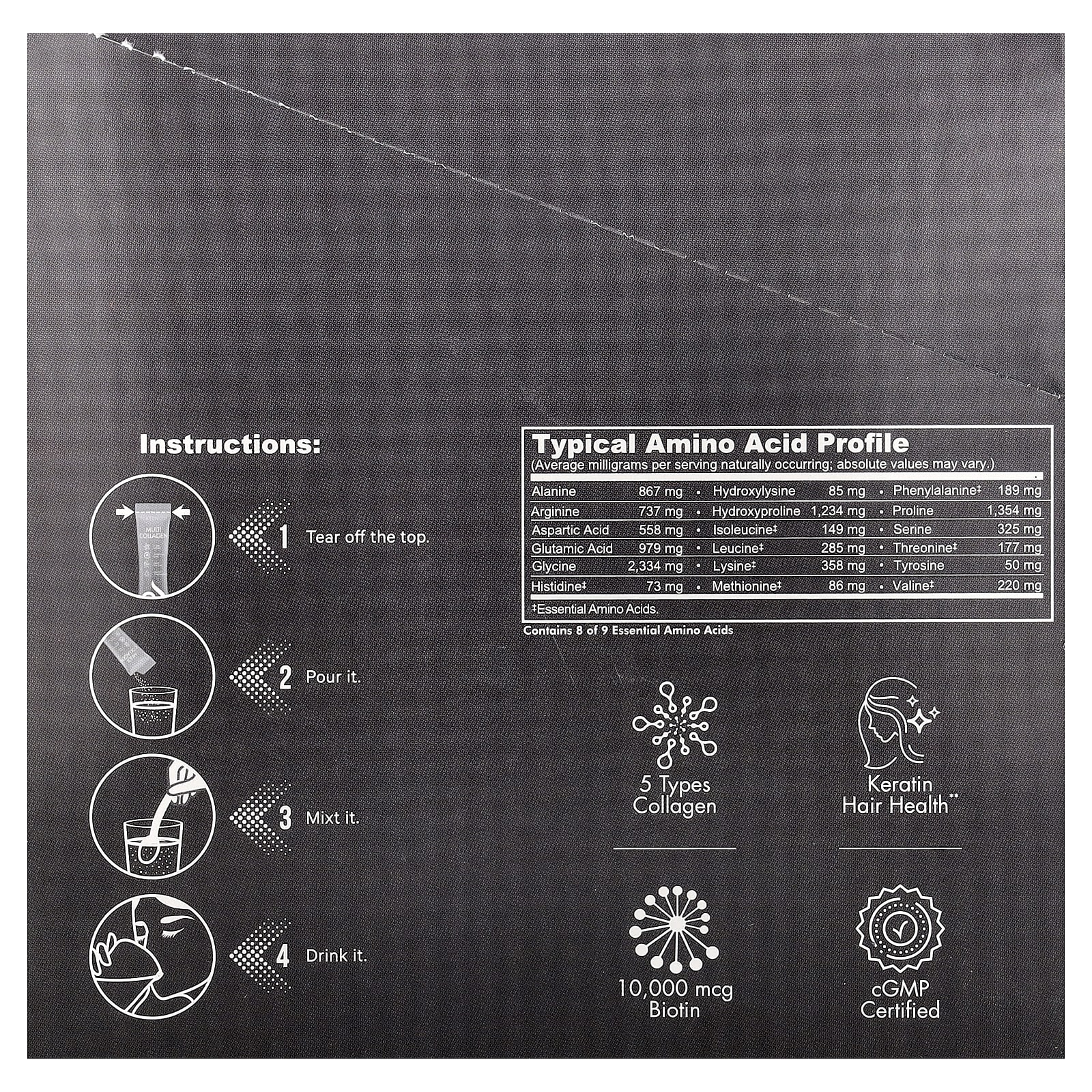 Не является значимым источником белка. Коллагеновый белок не учитывается в рекомендуемой FDA процентной суточной норме белка, потому что в нем отсутствует одна незаменимая аминокислота: триптофан.