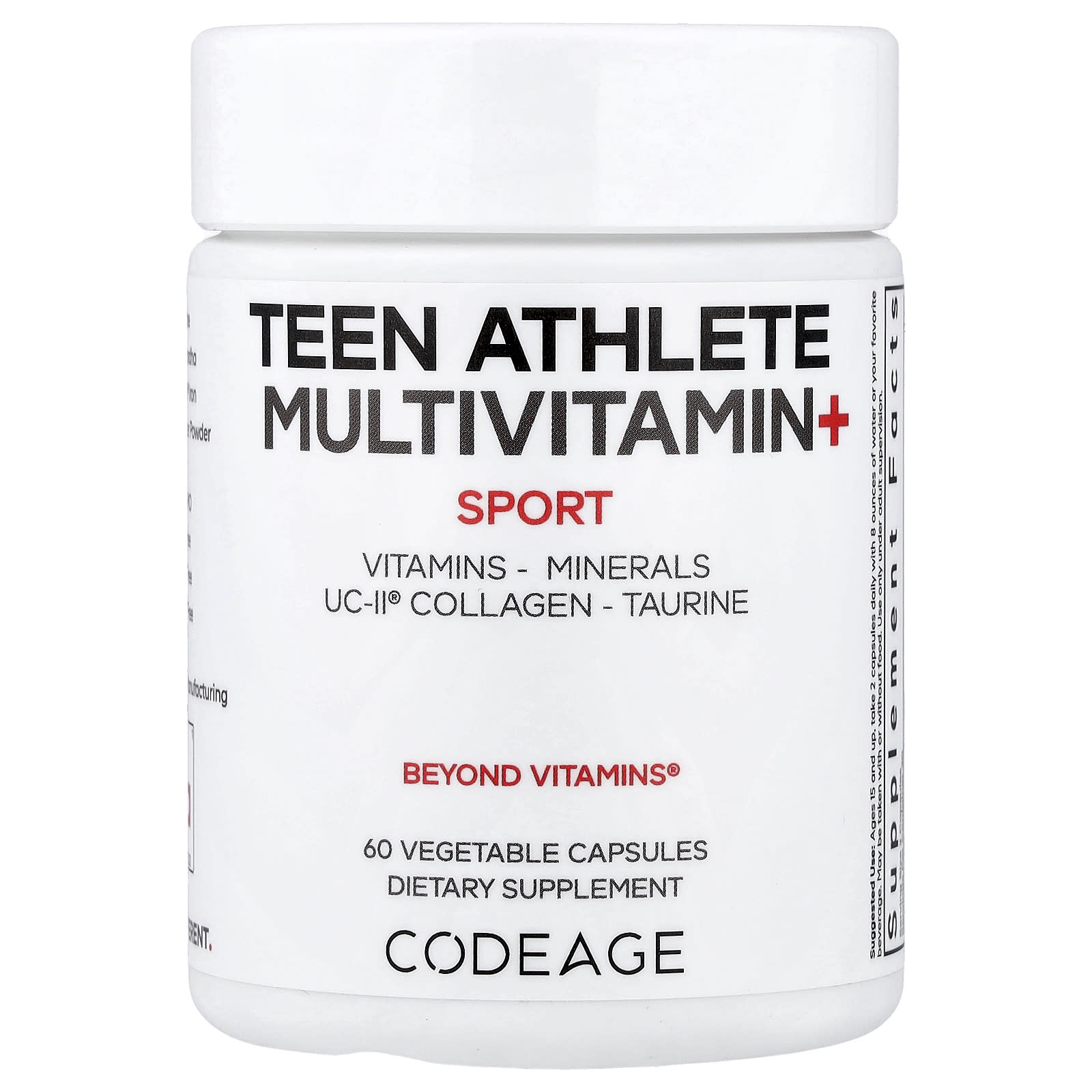 Мультивитамины+ для подростков от Codeage разработаны для активных подростков в возрасте от 15 лет и содержат смесь необходимых витаминов, минералов и таких ингредиентов, как креатин, таурин и электролиты. Он содержит питательные вещества, обычно используемые для удовлетворения потребностей юных спортсменов, включая витамины C, D3, B6, фолат, витамин B12, магний и железо.