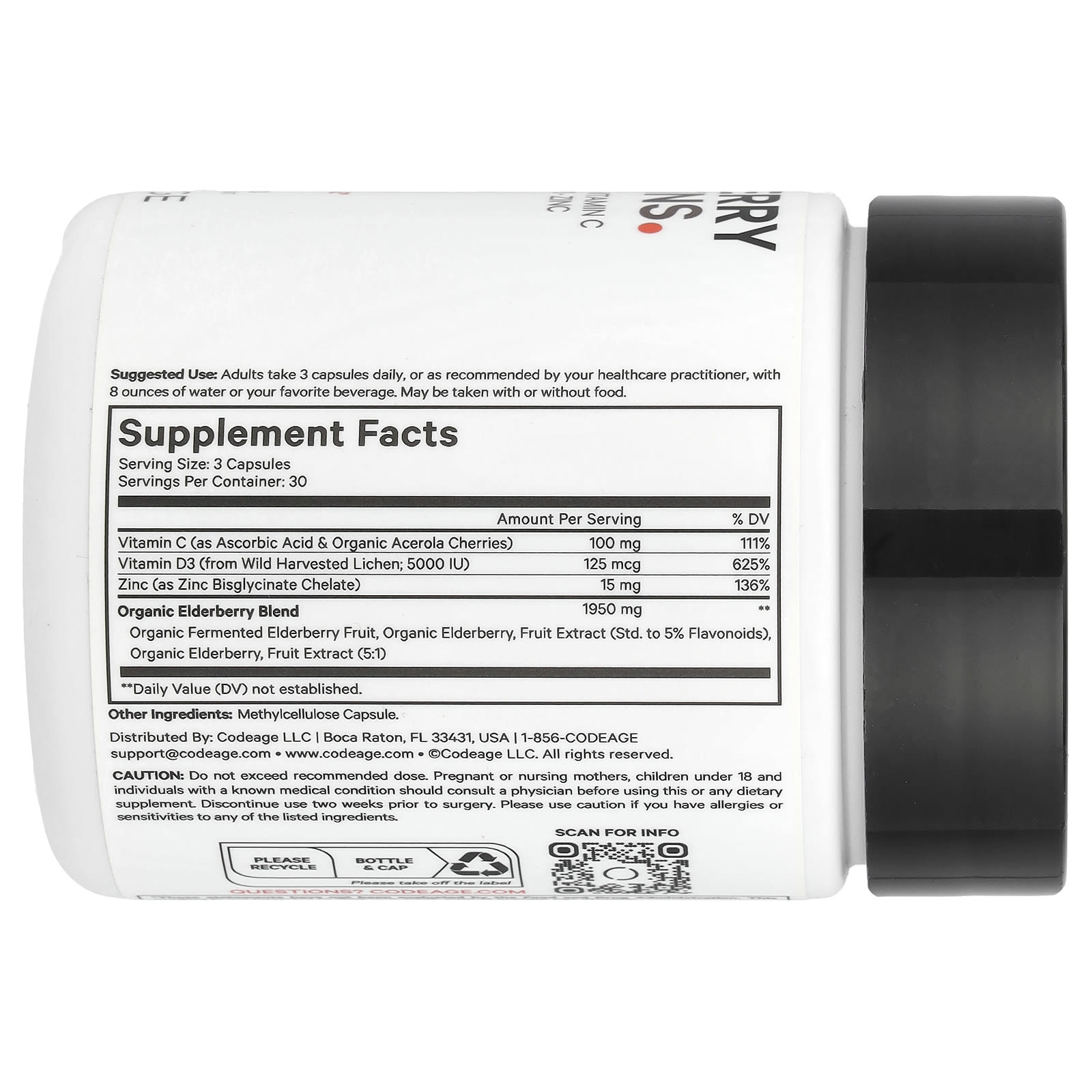 Веганская и органическая добавка из бузины с витамином C, витамином D3 и цинком в удобной форме универсальных капсул.