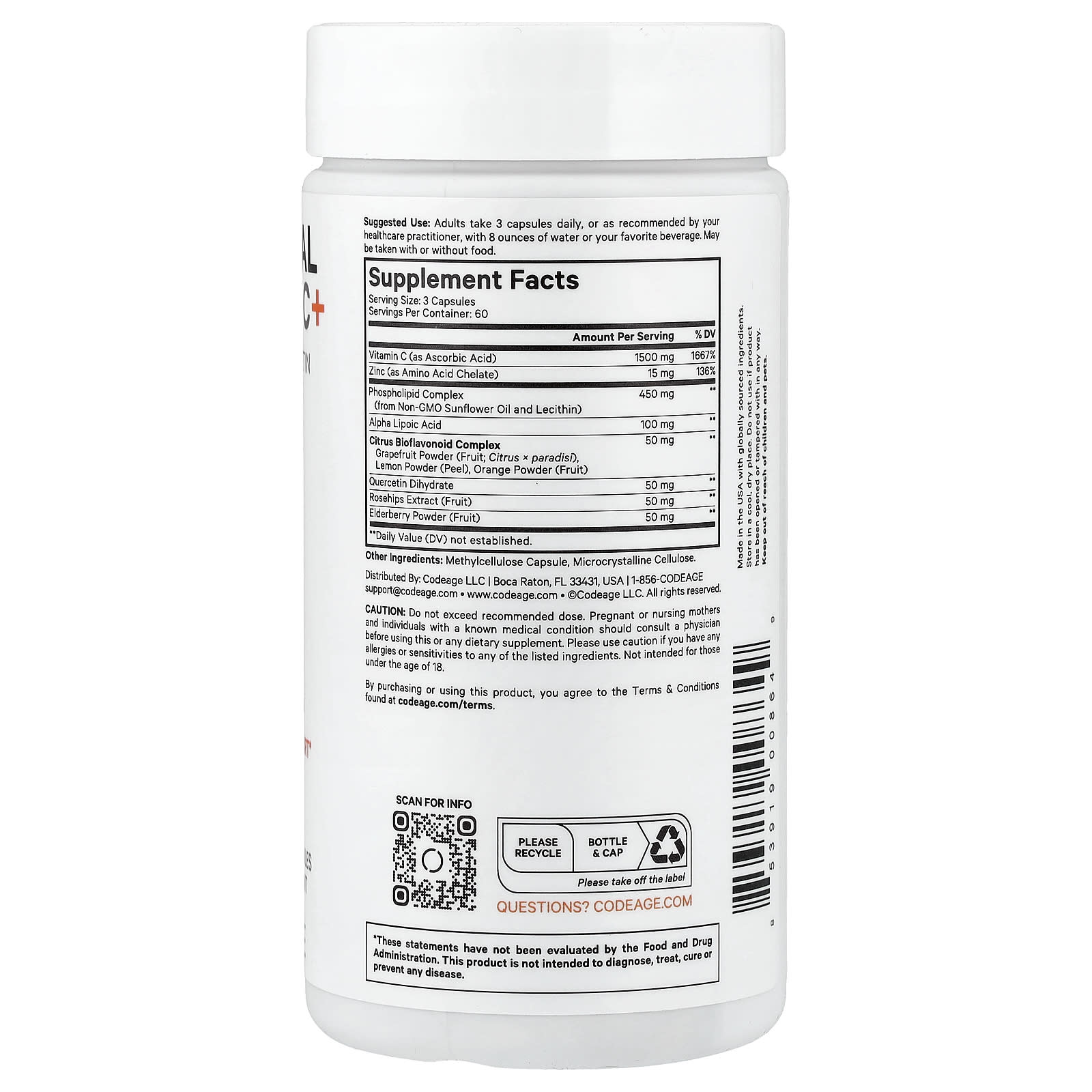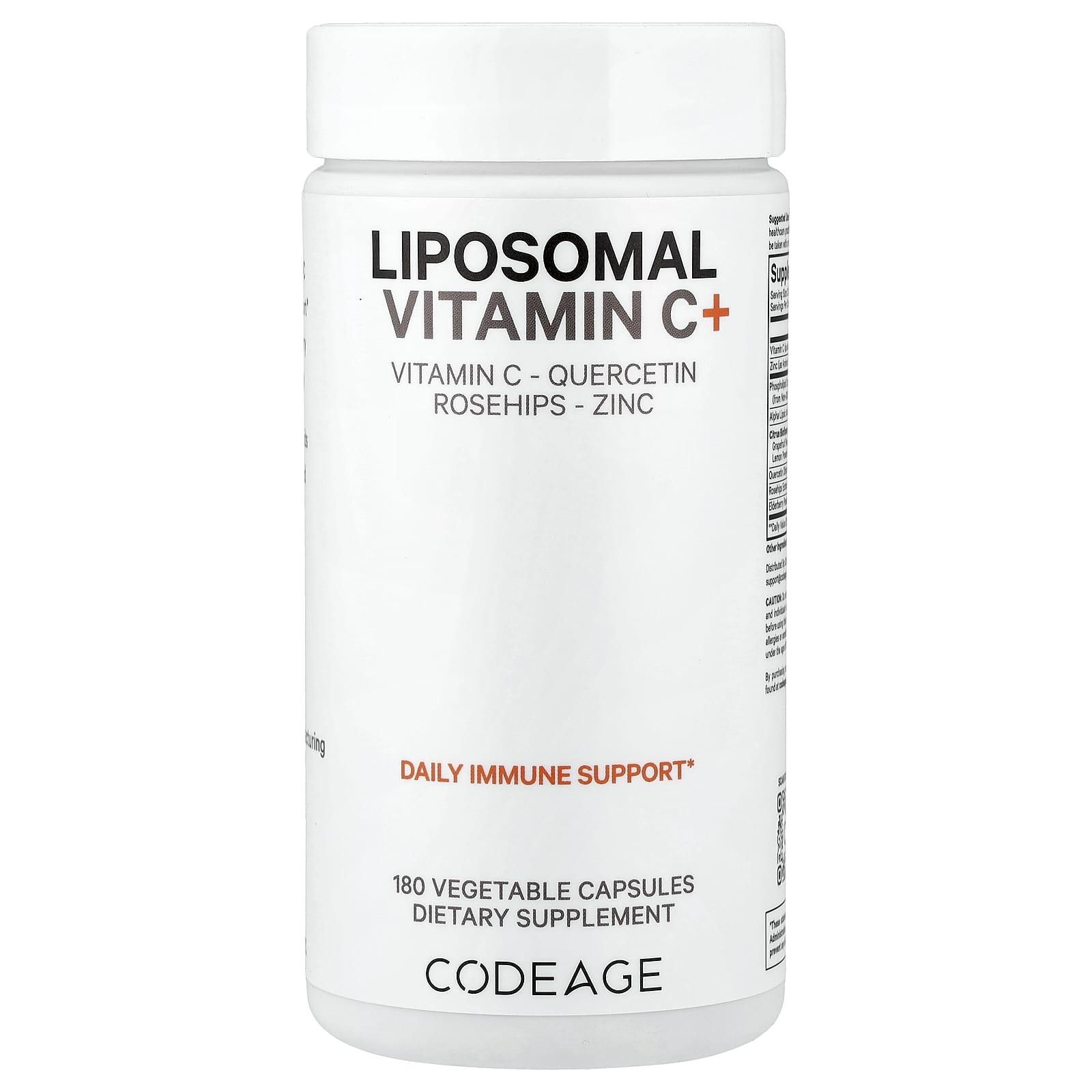 Липосомальный витамин C+ от Codeage — это высокоэффективная добавка, содержащая 1500 мг витамина C, цитрусовые биофлавоноиды, кверцетин, бузину, шиповник, цинк и альфа-липоевую кислоту. Эти усовершенствованные капсулы с витамином C также имеют липосомальную форму доставки.