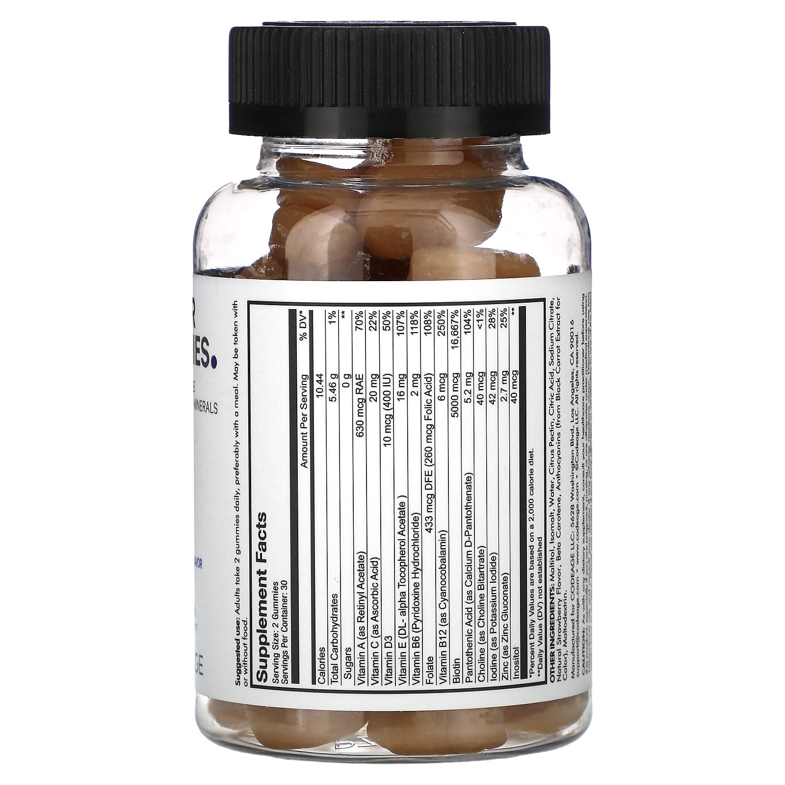 Жевательные таблетки для волос Codeage содержат биотин (5000 мкг), витамины A, C, B6, B12, D3, E, цинк, фолиевую кислоту, пантотеновую кислоту, инозитол, холин и йод, которые поддерживают здоровье волос, ногтей и кожи. Наслаждайтесь безупречным клубнично-кокосовым вкусом без сахара благодаря жевательным таблеткам в форме сердца на основе пектина и не содержит желатина животного происхождения.