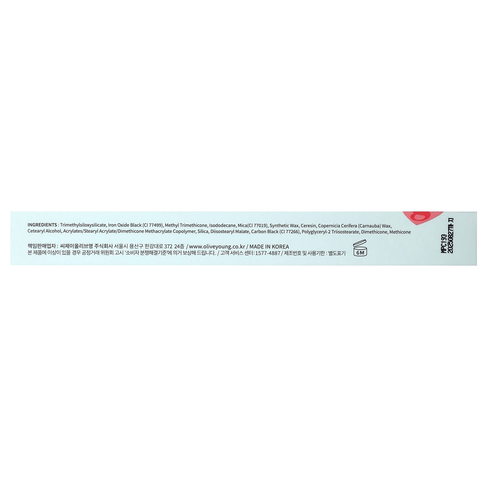 триметилсилоксисиликат, черный оксид железа (CI 77499), метилтриметикон, изододекан, слюда (CI 77019), синтетический воск, церезин, карнаубский воск (Copernicia cerifera), цетеариловый спирт, акрилаты/стеарил акрилат/диметикон метакрилат сополимер, диоксид кремния, диизостеарил малат, угольная уголь (CI 77266), полиглицерил-2 триизостеарат, диметикон, метикон