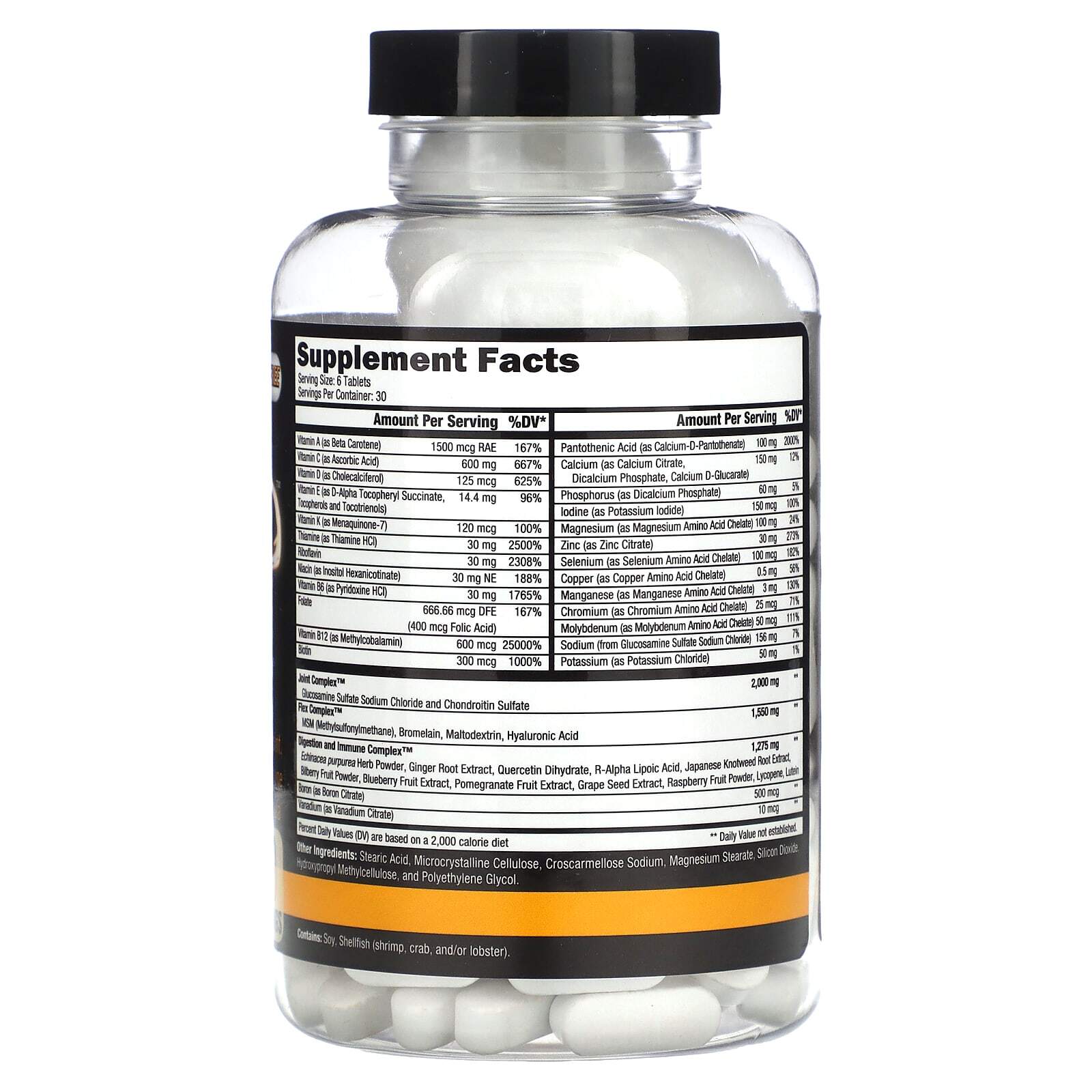 Этот продукт содержит моллюски и ингредиенты, полученные из сои. Перед употреблением этого продукта следует проконсультироваться с врачом, если вы не знаете о своем текущем состоянии здоровья или страдаете каким-либо заболеванием, включая, помимо прочего, диабет, высокое или низкое кровяное давление, сердечную аритмию, инсульт; заболевания сердца, почек, печени или щитовидной железы; беспокойство, судороги в анамнезе, депрессию, любые психические заболевания, пернициозную анемию или другие заболевания крови, увеличение простаты. Этот продукт предназначен только для взрослых от 18 до 50 лет.