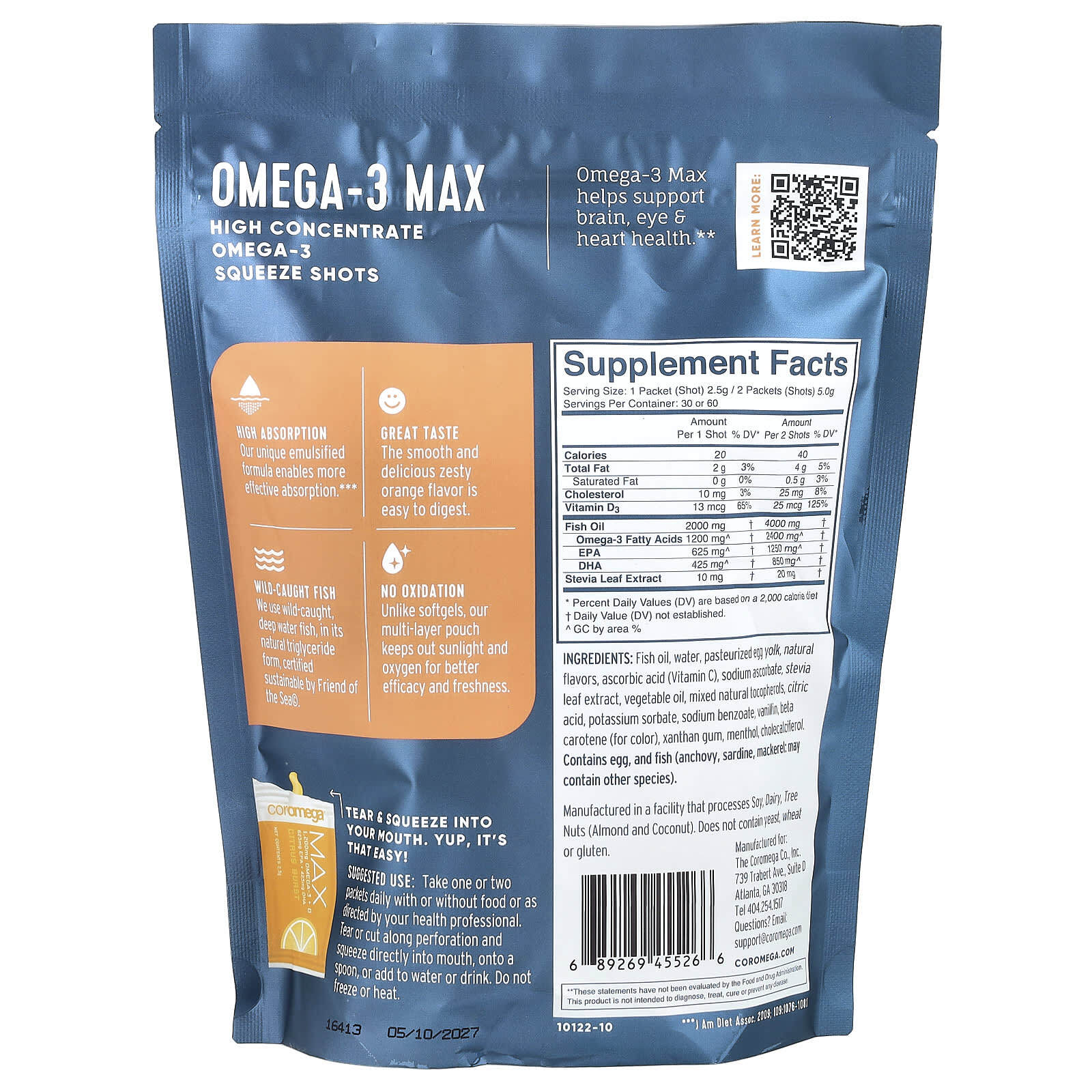 Рыбий жир, вода, пастеризованный яичный желток, натуральный апельсиновый ароматизатор, аскорбиновая кислота, аскорбат натрия, экстракт листьев стевии, растительное масло, смешанные натуральные токоферолы, лимонная кислота, сорбат калия, бензоат натрия, ванилин, бета-каротин (для цвета), ксантановая смола , ментол, холекальциферол.