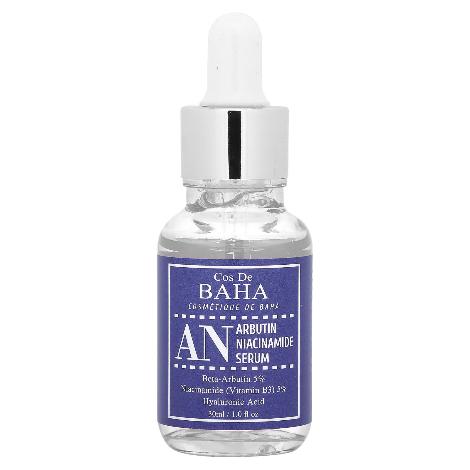 Сыворотка Cos De BAHA AN содержит бета-арбутин, никотинамид (витамин B3) и гиалуроновую кислоту в качестве активных ингредиентов.
