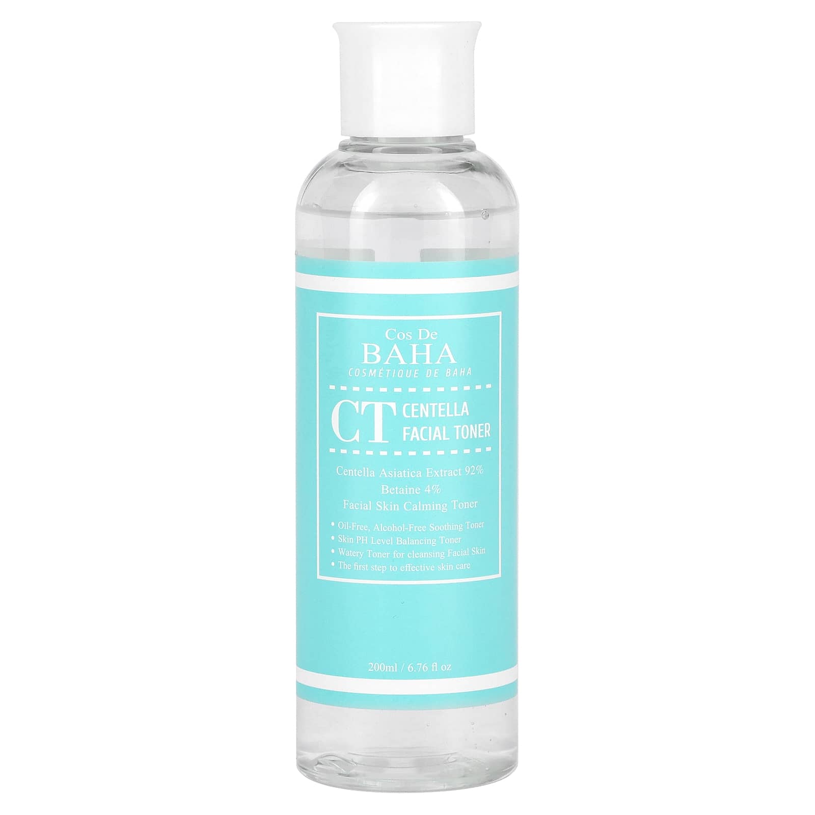 Тонер для лица Cos De BAHA CT содержит экстракт готу колы (Centella asiatica) 92%, бетаин 4%, аллантоин и экстракты натуральных трав в качестве активных ингредиентов.