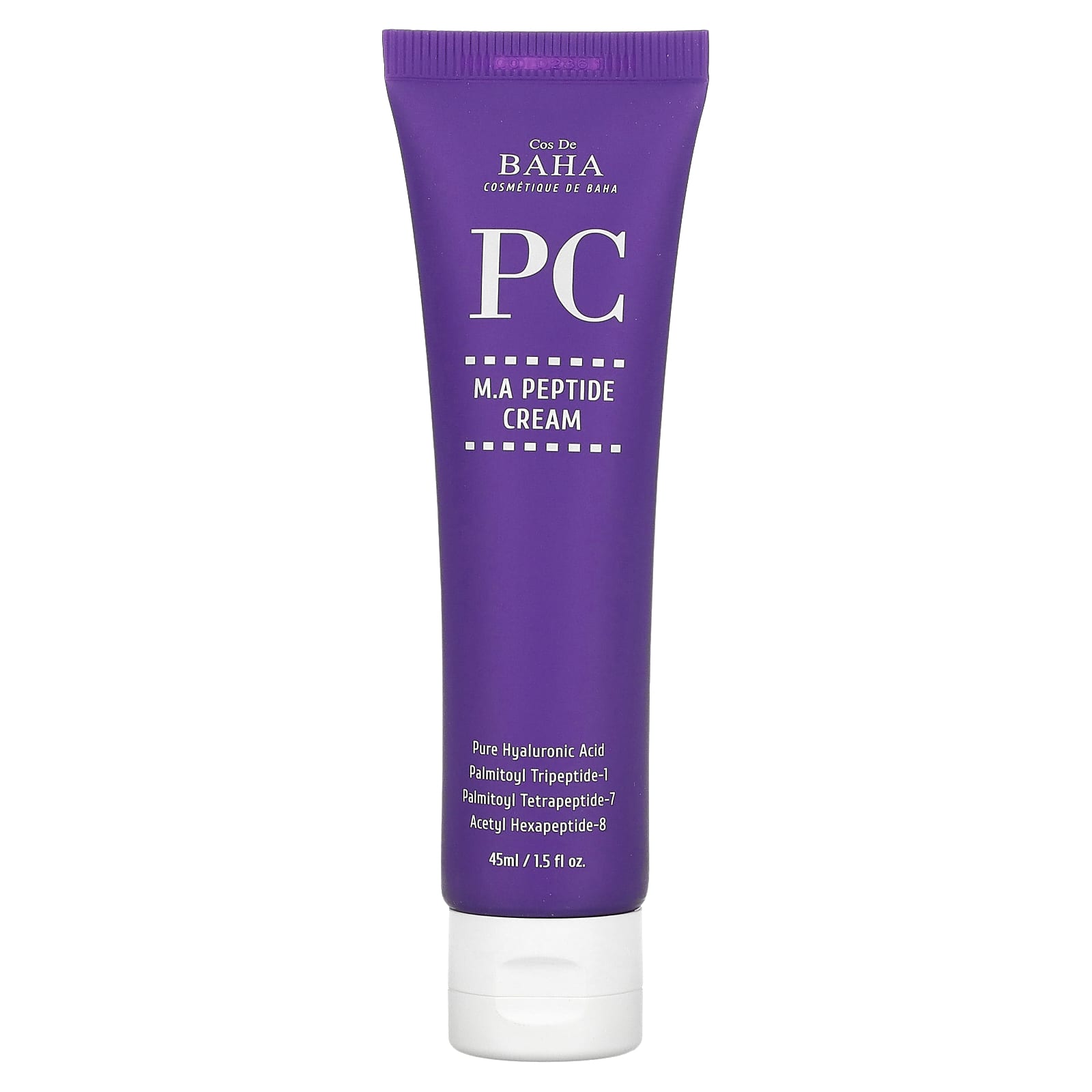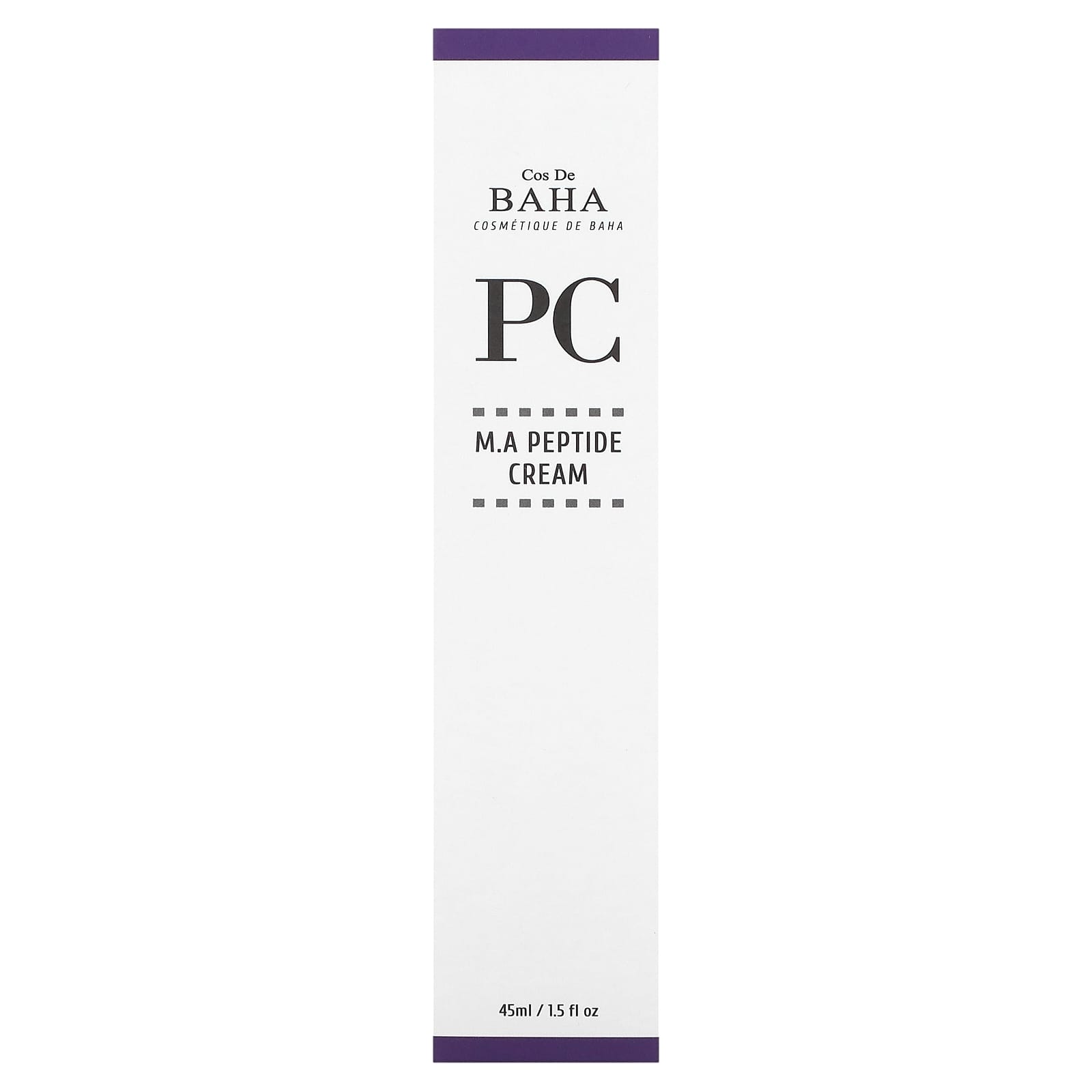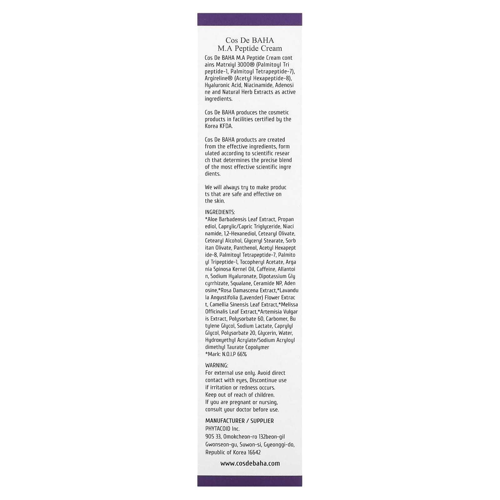 Крем с пептидами Cos De BAHA MA содержит Matrxiyl 3000® (пальмитоил трипептид-1, пальмитоил тетрапептид-7), Argireline® (ацетил гексапептид-8), гиалуроновую кислоту, никотинамид, аденозин и натуральные экстракты трав в качестве активных ингредиентов.