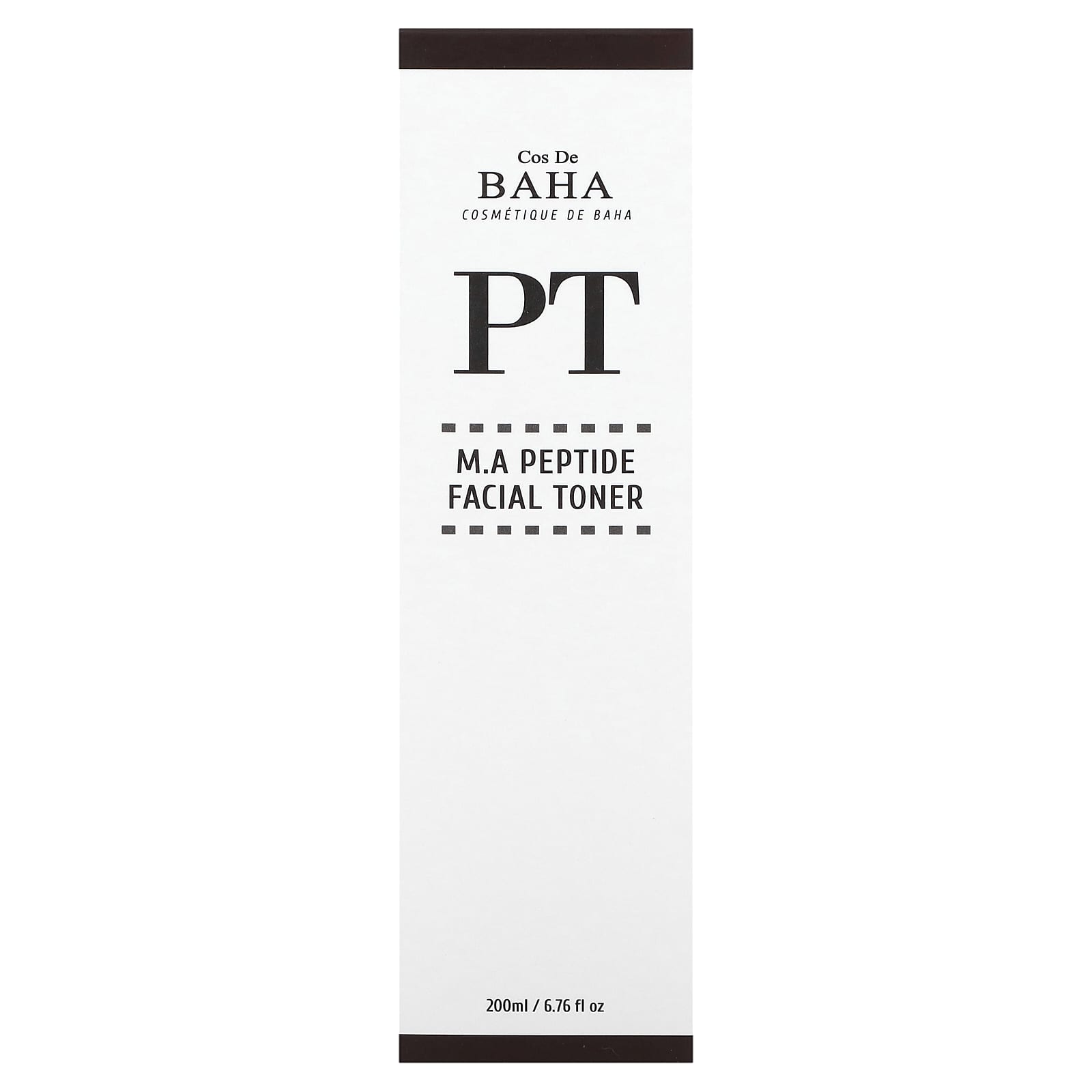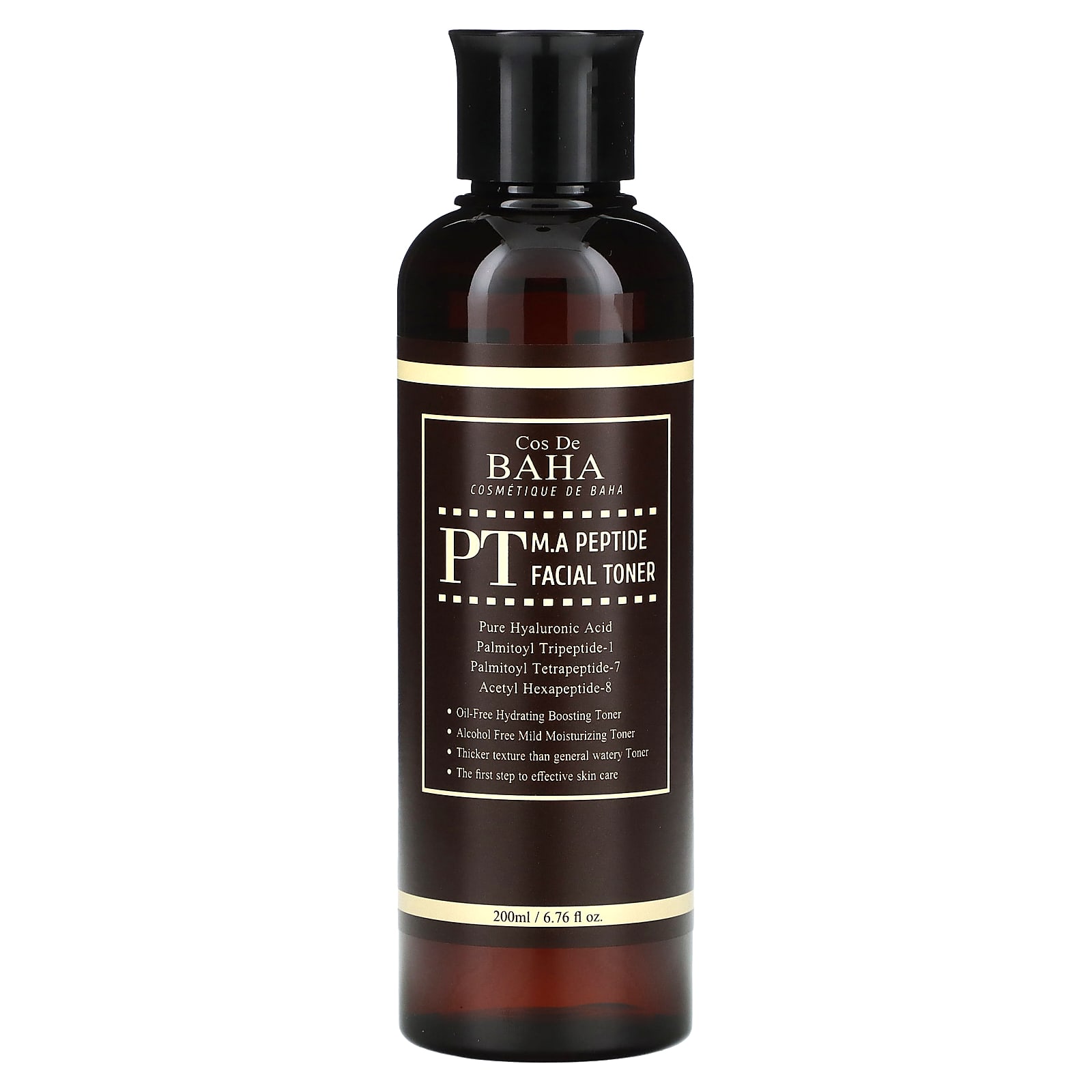 Тонер для лица с пептидами Cos De BAHA MA содержит пальмитоил трипептид-1, пальмитоил тетрапептид-7, ацетил гексапептид-8 пептид, гиалуроновую кислоту и натуральные экстракты трав в качестве активных ингредиентов.
