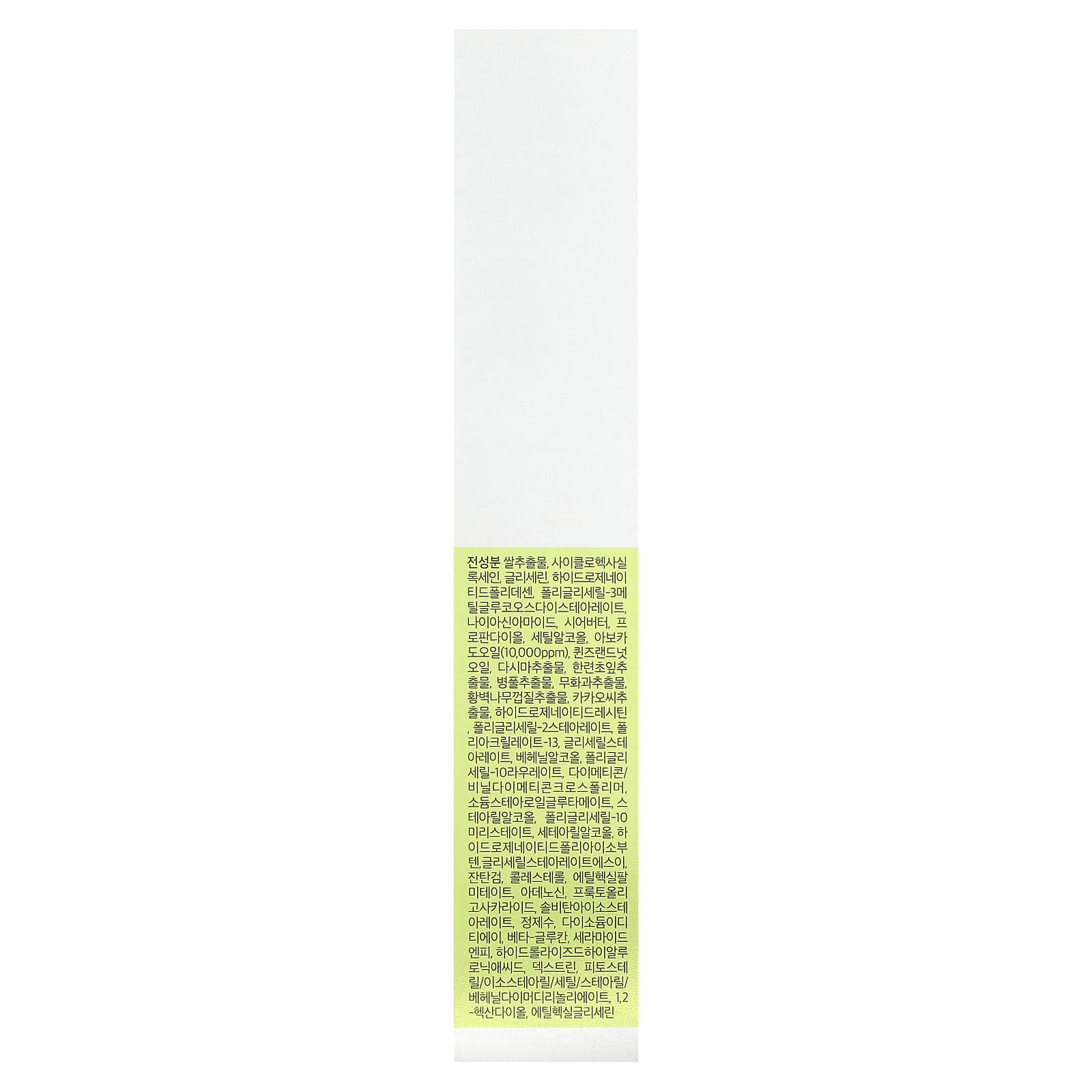 Экстракт риса, циклогексил оксан, глицерин, гидрогенизированный полидецен, полиглицерил-3метилглюкоза дистеарат, никотинамид, масло ши, пропандиол, цетиловый спирт, масло авокадо (10 000 част. / млн), королевское масло, экстракт бурых водорослей, экстракт листьев настурции, экстракт готу колы (Centella asiatica), экстракт инжира, экстракт коры хвангыма, экстракт семян какао, гидрогенизированный лецитин полиглицерил-2 стеарат, полиакрилат-13, глицерил стеарат, бегениловый спирт, полиглицерил-10 лаурат, диметикон/винил диметикон кроссполимер, натрия стеароил глутамат, стеариловый спирт, полиглицерил-10 миристат, цетеариловый спирт , гидрогенизированный полиизобутен, глицерил стеарат эмульгирующий, ксантановая камедь, холестерина, этилгексилнитрат, аденозин, фруктоолигосахарид, сорбитан изостеарат, очищенная вода, двунатриевая ЭДТК, бета-глюкан, керамид NP, гидролизованная гиалуроновая кислота, декстрин фитостерил / изостеарил / цетил / стеарил / бегенил димер дилинолеат, 1,2-гександиол, этилгексилглицерин.