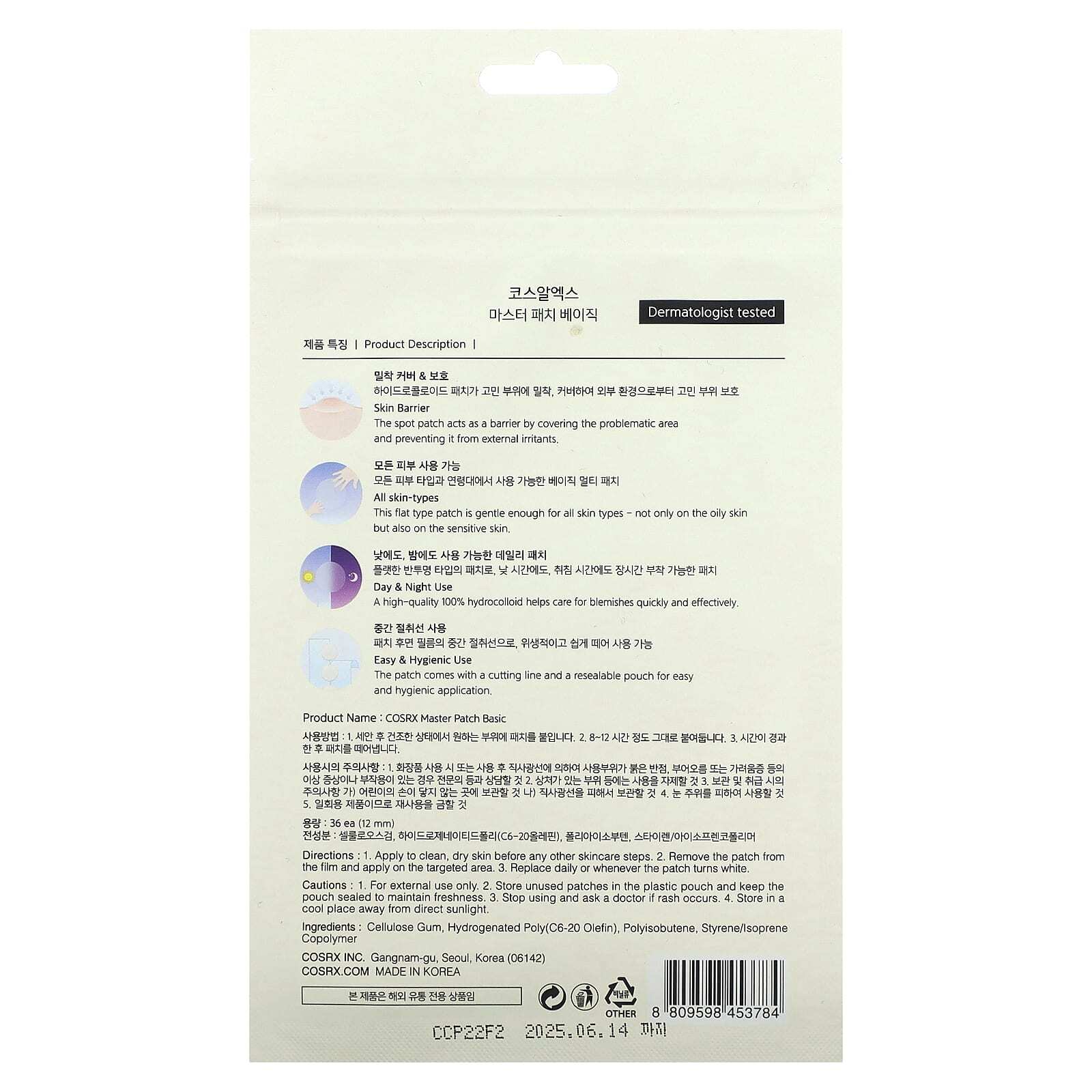 Патч поставляется с линией отреза и закрывающимся пакетом для легкого и гигиеничного применения.