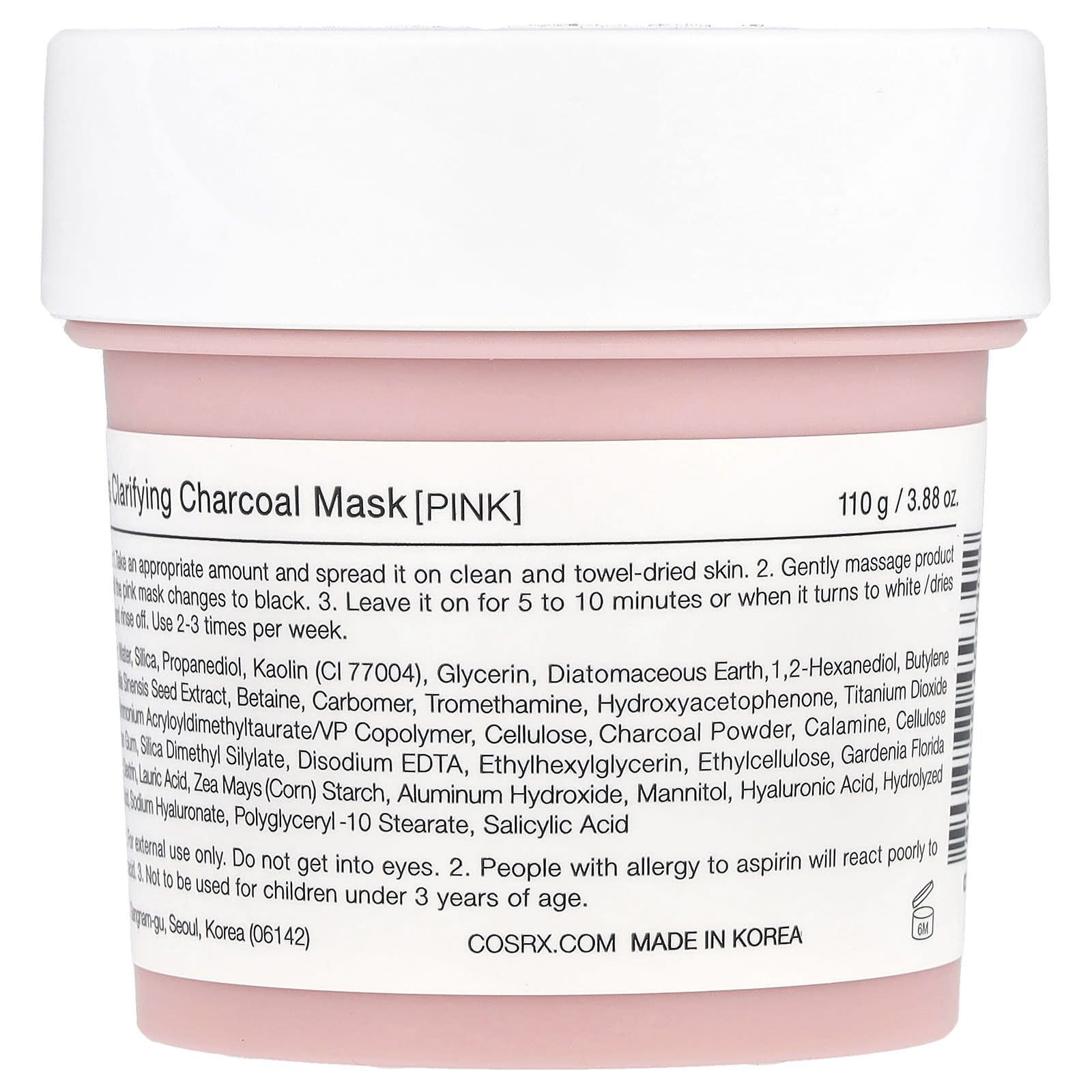 Вода, диоксид кремния, пропандиол, kaolin (CI 77004), глицерин, диатомит, 1,2-гександиол, бутиленгликоль, экстракт семян камелии китайской, бетаин, карбомер, трометамин, гидроксиацетофенон, диоксид титана (CI 77891), акрилоилдиметилтаурат аммония / ВП сополимер, целлюлоза, древесный уголь, каламин, целлюлозная камедь, ксантановая камедь, диметилсилилат диоксида кремния, двунатриевая ЭДТК, этилгексилглицерин, этилцеллюлоза, экстракт плодов гардении флоридской, декстрин, лауриновая кислота, кукурузный крахмал, гидроксид алюминия, маннит, гиалуроновая кислота, гидролизованная гиалуроновая кислота, гиалуронат натрия, полиглицерил-10 стеарат, салициловая кислота.