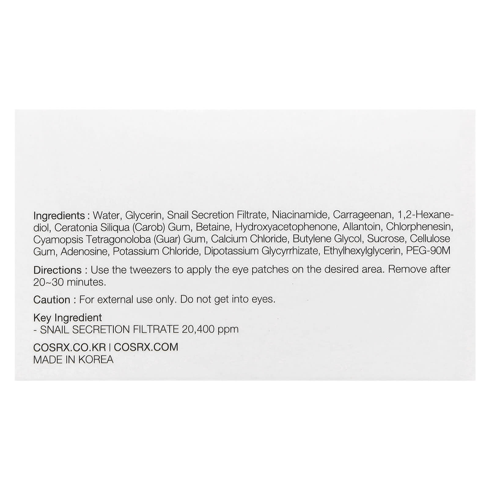 Вода, глицерин, фильтрат секрета улитки, никотинамид, каррагинан, 1,2-гександиол, камедь рожкового дерева (Ceratonia siliqua), бетаин, гидроксиацетофенон, аллантоин, хлорфенезин, гуаровая камедь (Cyamopsis tetragonoloba), хлорид кальция, бутиленгликоль, сахароза, целлюлозная камедь, аденозин, хлорид калия, дикалия глицирризат, этилгексилглицерин, ПЭГ-90М.