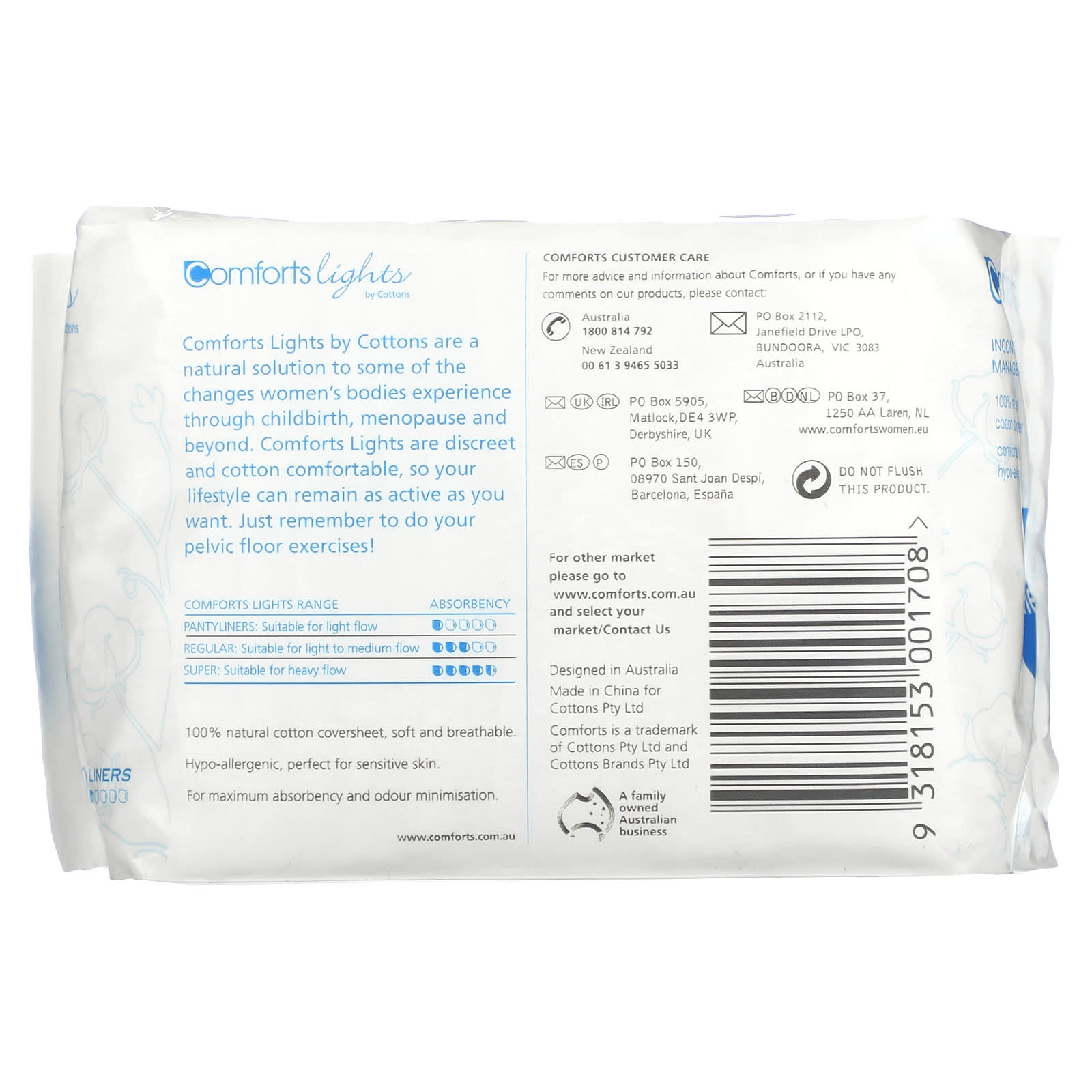 Светильник Comforts Lights от Cottons - это естественное решение некоторых проблем, с которыми сталкивается женский организм во время родов, менопаузы и т. Д. Комфортные светильники - это ненавязчивый материал из хлопка, который позволит вам вести активный образ жизни. Не забывайте делать упражнения для мышц тазового дна!