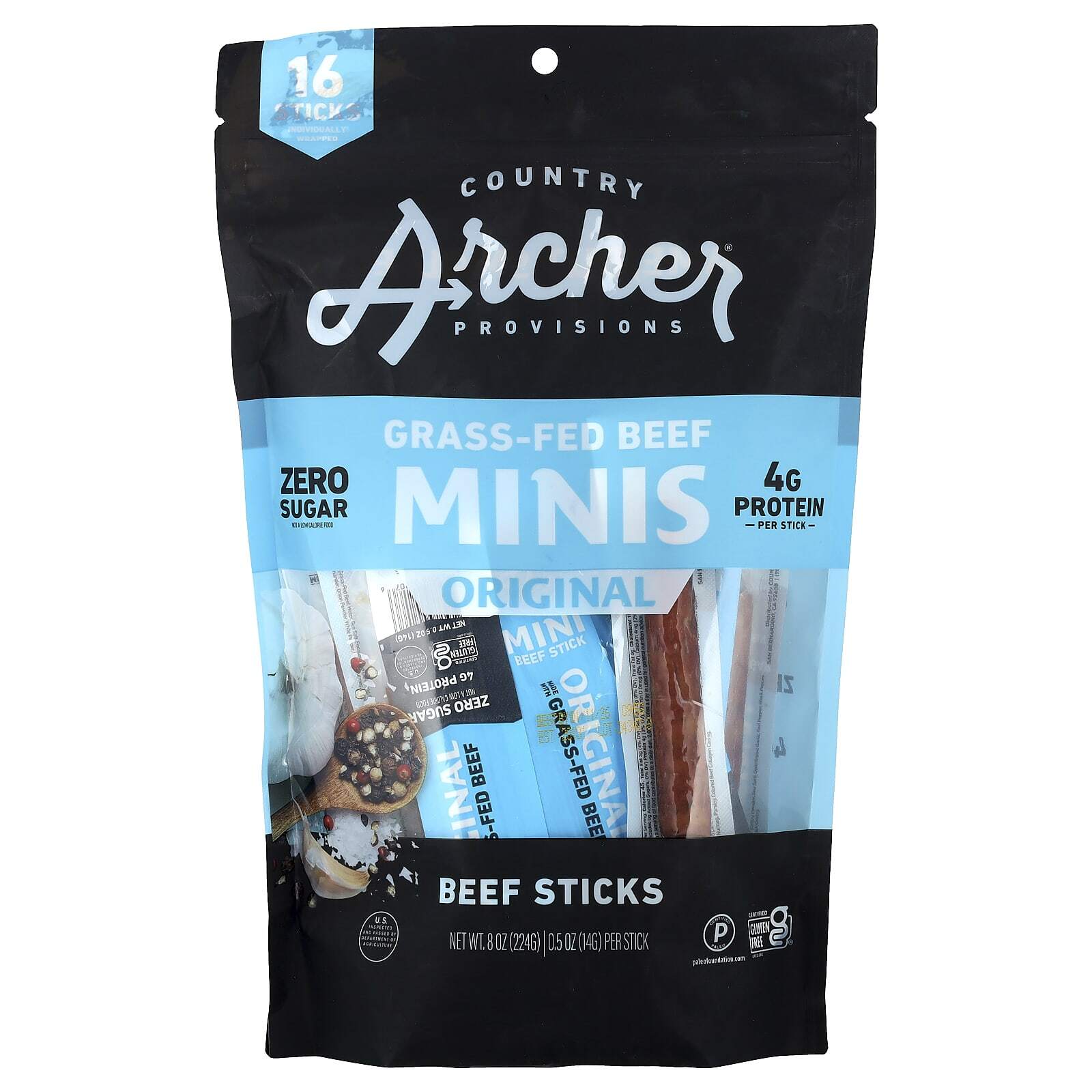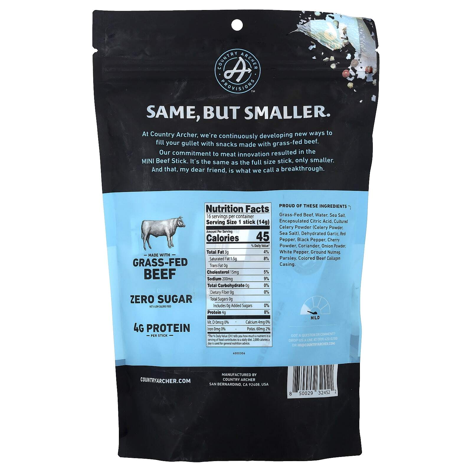 В Country Archer мы постоянно разрабатываем новые способы наполнить ваш глоток закусками из говядины травяного откорма. Наше стремление к инновациям в мясе привело к созданию мини-стика для говядины MINI. Такой же, как у полноразмерной ручки, только поменьше. И это, мой дорогой друг, мы называем прорывом.