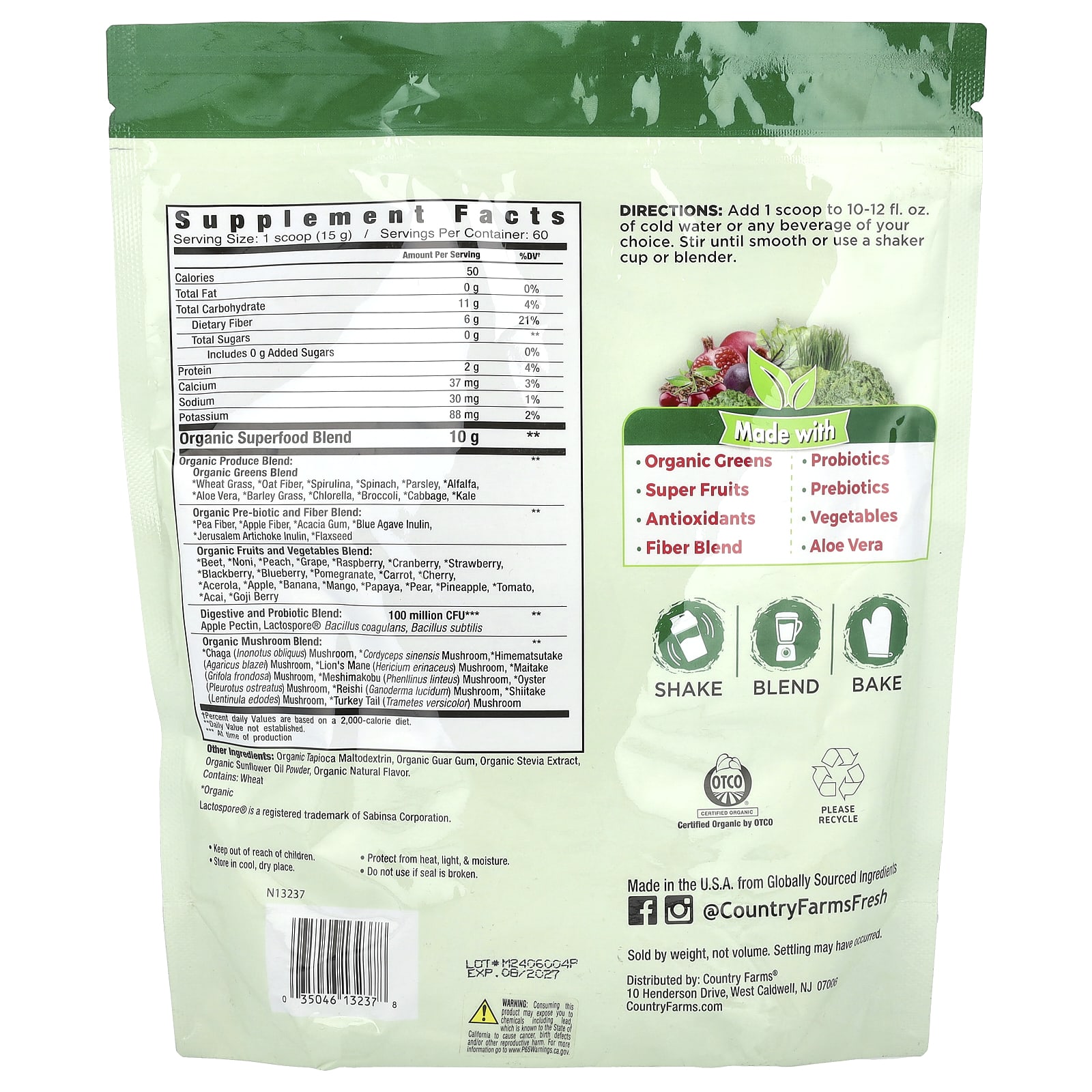 Country Farms, Super Greens, подщелачивающая формула, без добавок, 900 г (31,8 унции)