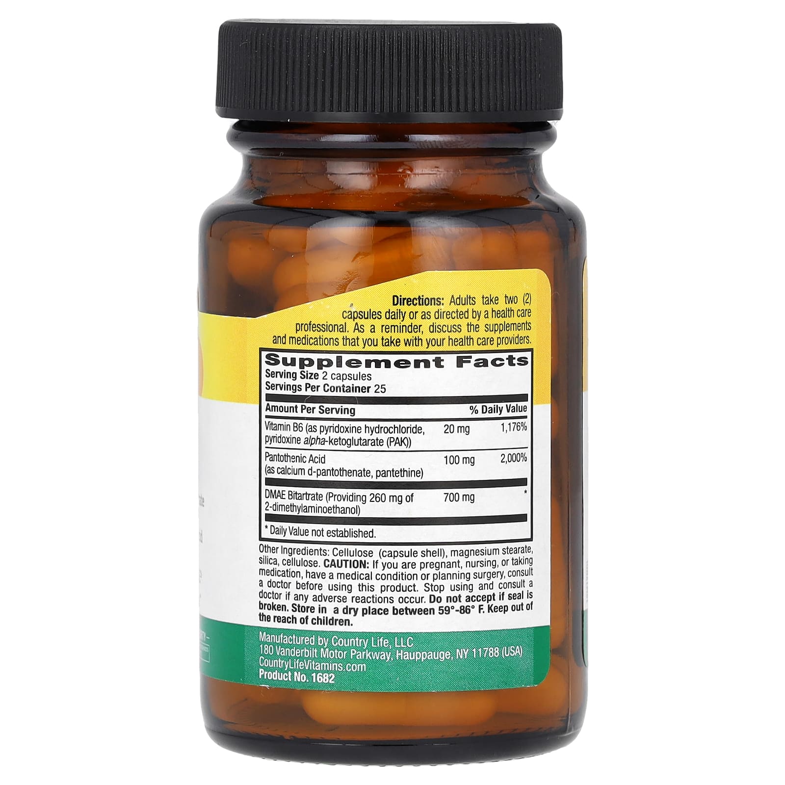 От Country Life Vitamin, одного из ведущих производителей ДМАЭ^. ДМАЭ является прекурсором ацетилхолина, ключевого нейромедиатора головного мозга.