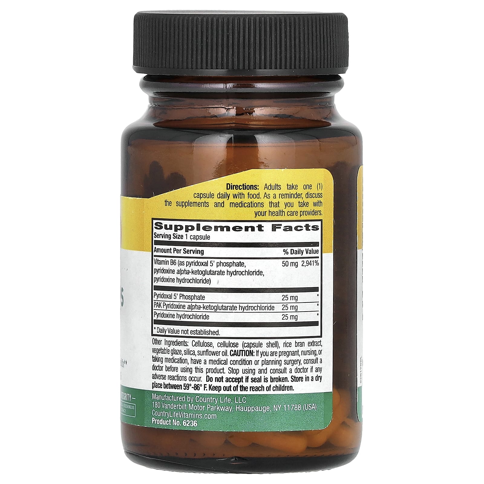 | Витамин B6 (в виде пиридоксаля-5'-фосфата, пиридоксина альфа-кетоглутарата, пиридоксина гидрохлорида) | 50 мг | 2500% |