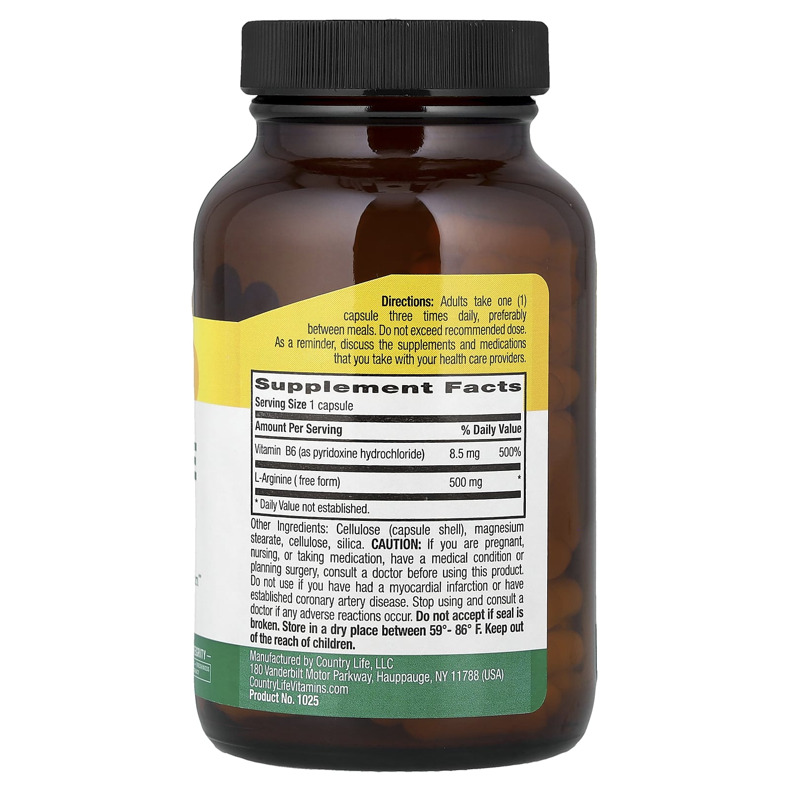 Аминокислоты являются строительными элементами белков. L-аргинин поддерживает иммунную функцию. Многие аминокислоты Country Life также содержат витамин B6, который способствует усвоению.