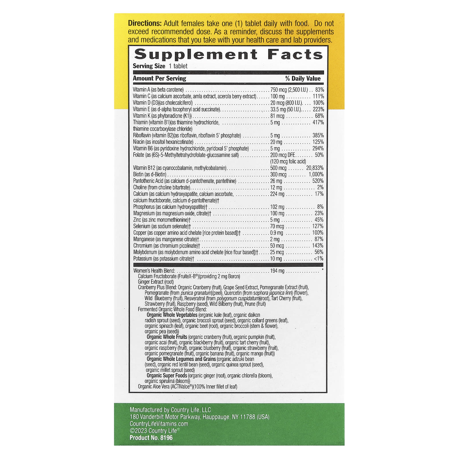 Взрослые женщины принимают по одной (1) таблетке в день во время еды. Не превышайте рекомендуемую дозу. Напоминаем о необходимости обсудить добавки и лекарства, которые вы принимаете, со своим врачом.