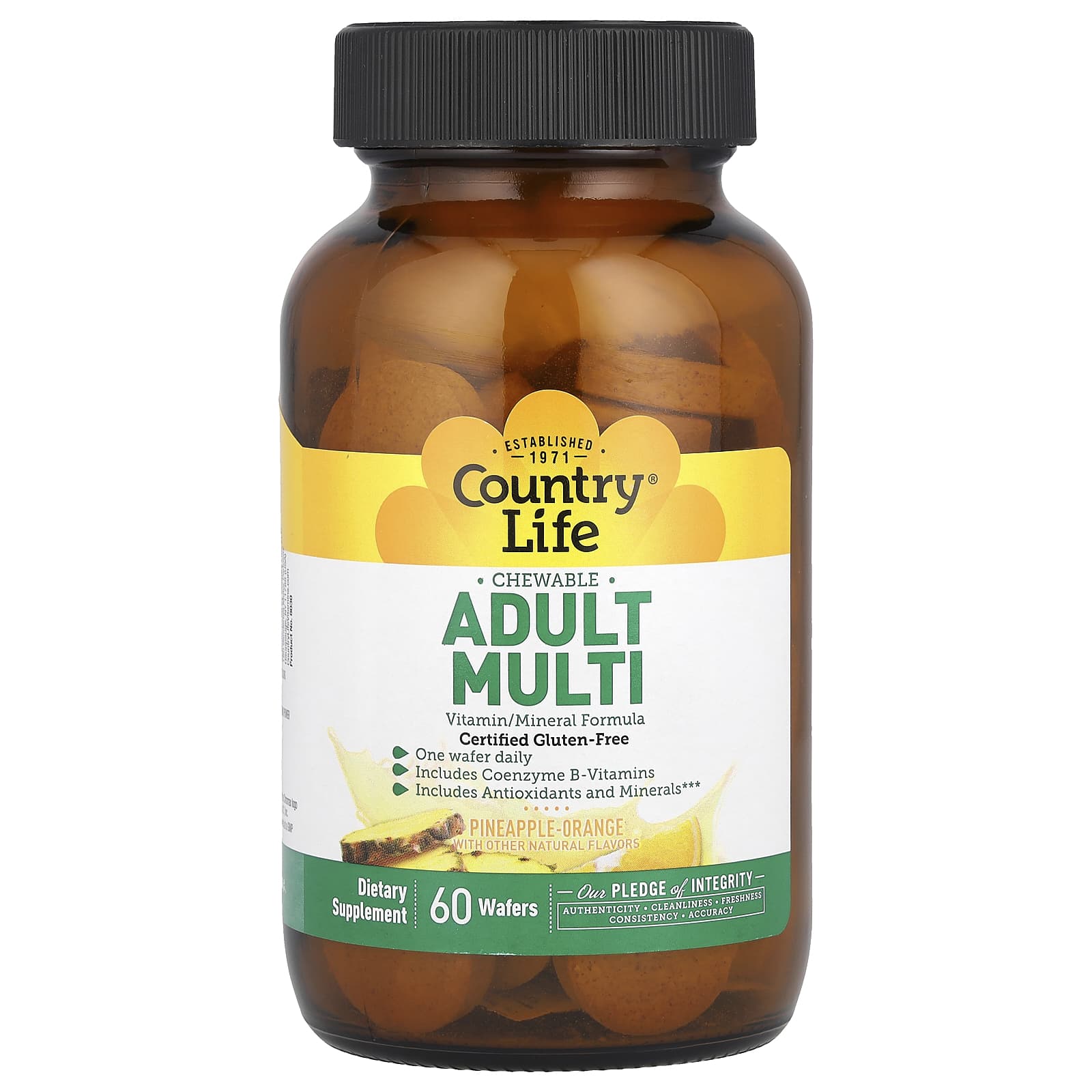 Жевательные мультивитамины для взрослых от Country Life содержат коэнзимные витамины группы B для поддержки энергетического обмена, а также мощные антиоксиданты, такие как витамины C, E, селен и бета-каротин. Все это упаковано в мягкие вкусные жевательные вафли с удобной ежедневной порцией!